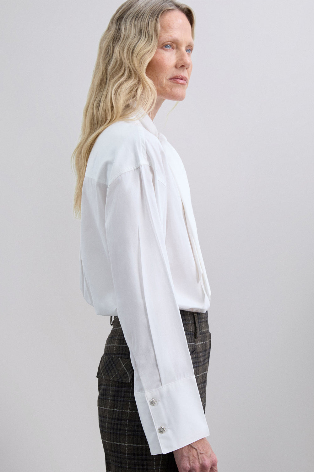 Overhemd gemaakt van 100% BCI-katoen. Regular fit. Kraag met strik. Knoopsluiting. Lange mouw met manchetten afgewerkt met knopen. Plooien aan de achterkant.