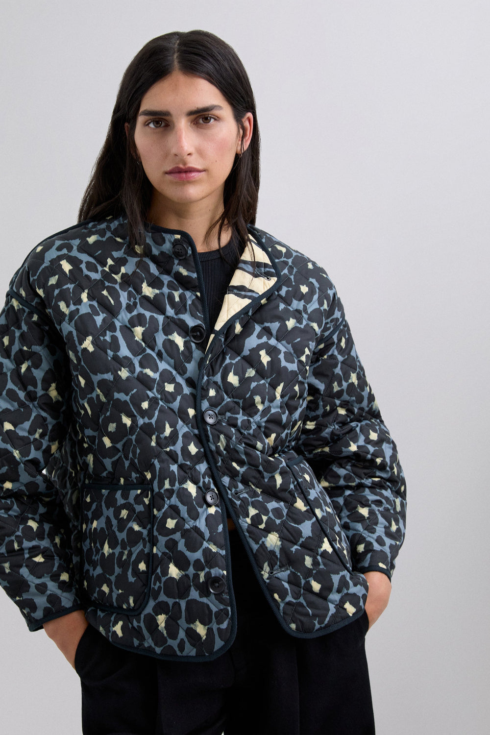 Gewatteerd omkeerbaar jack. Relaxed fit. Dierenprint. Lange mouw. Twee zakken aan de voorkant. Knoopsluiting.