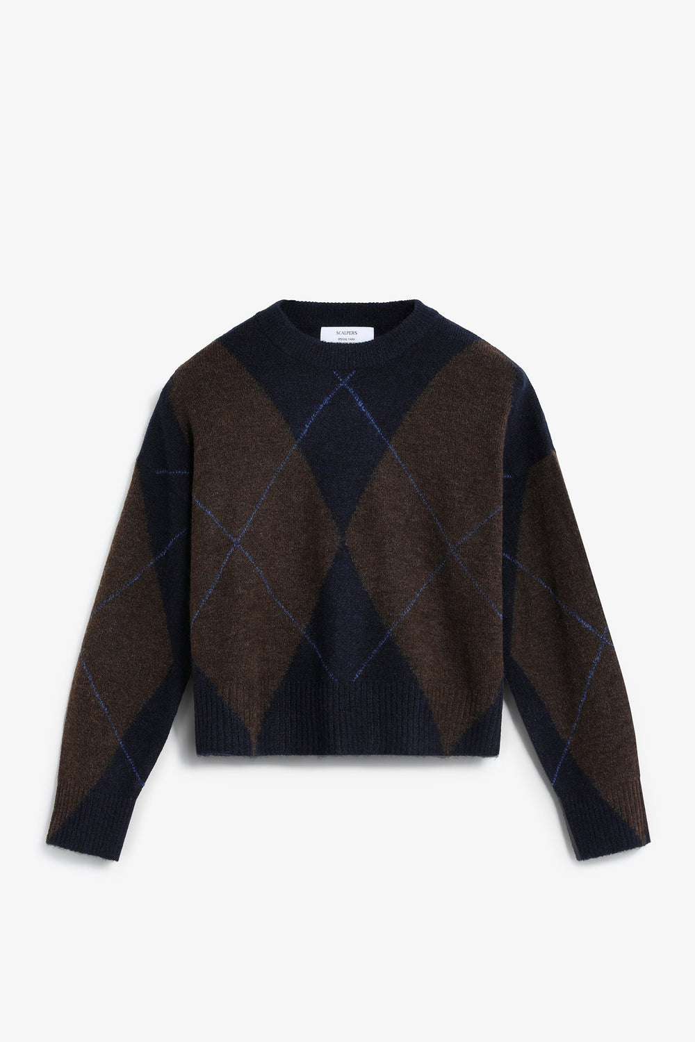 Tricot trui van wolmix. Ruitjespatroon. Regular fit. Ronde hals met rib. Lange mouw met geribde boord.