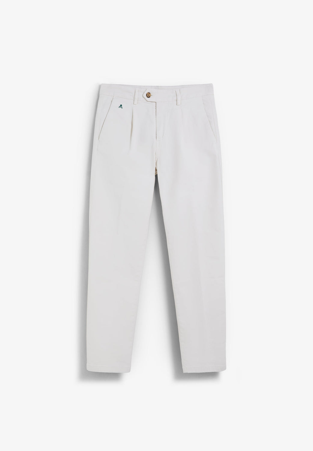 Chino broek gemaakt van 100% katoen. Contrasterend borduursel op de zakken. Regular fit. Bandplooi op de voorkant. Riemlussen op de tailleband. Ritssluiting met knoop tot in de taille. Steekzakken en achterzakken. Gemaakt in Spanje.