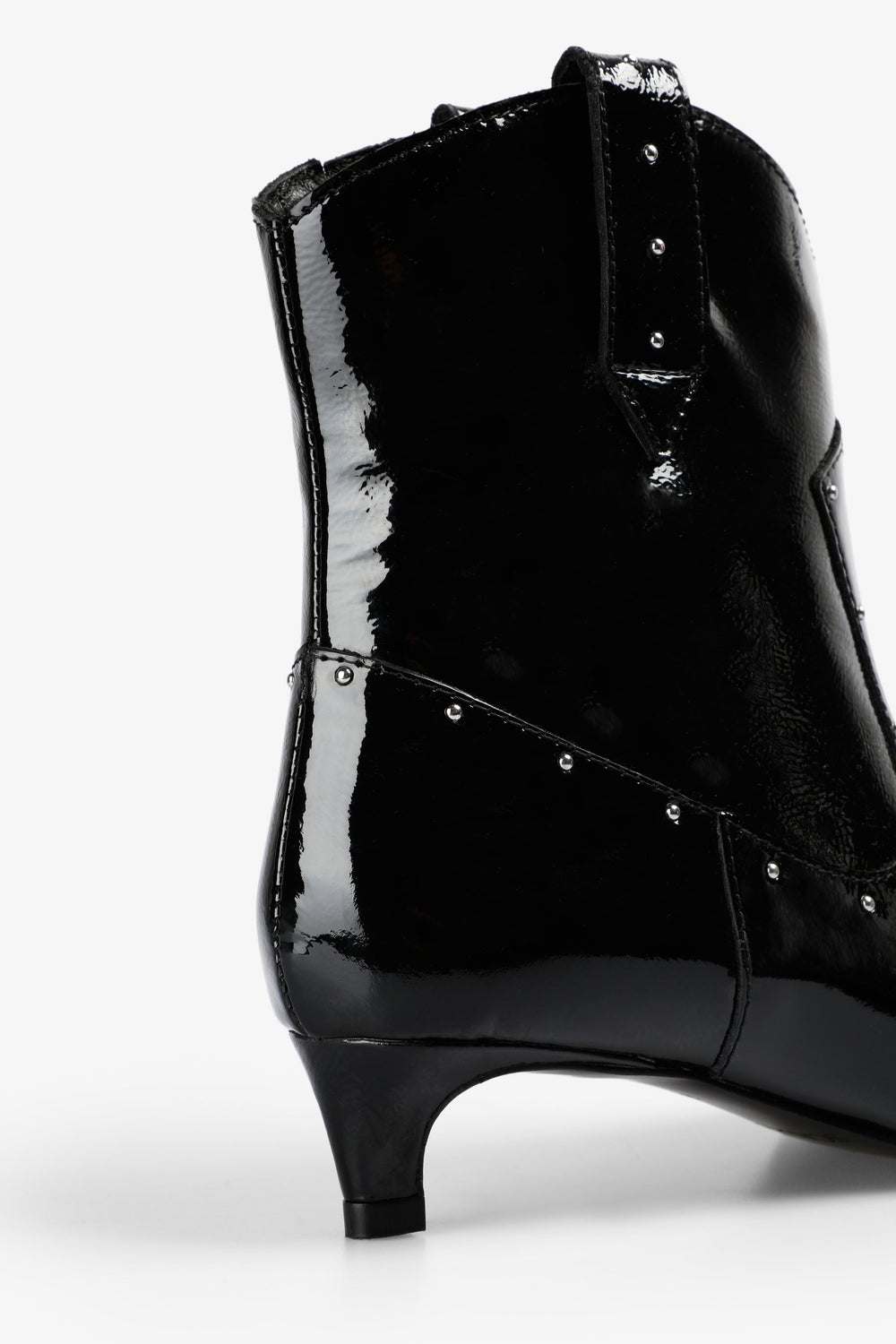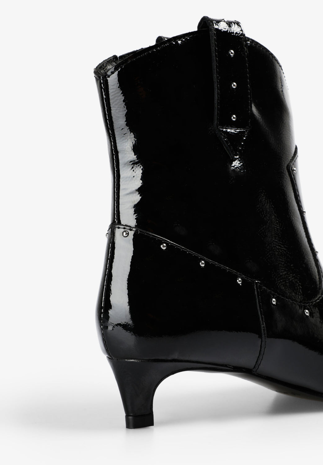 Laarzen gemaakt van 100% leer. Studs. Smalle hoge hak. Spitse neus.