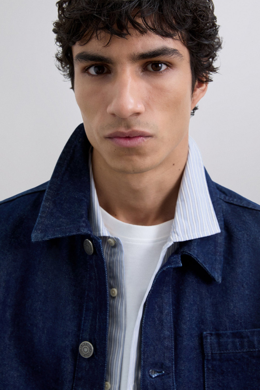 Chaqueta vaquera confeccionada en 100% Algodón. Cuello camisero. Efecto lavado suave. Bolsillos en frontal con detalle de etiqueta. Puños ajustables. Cierre mediante abotonadura.