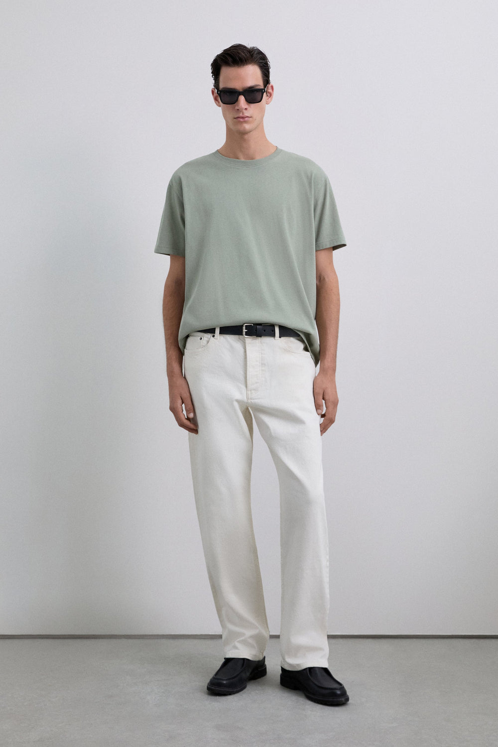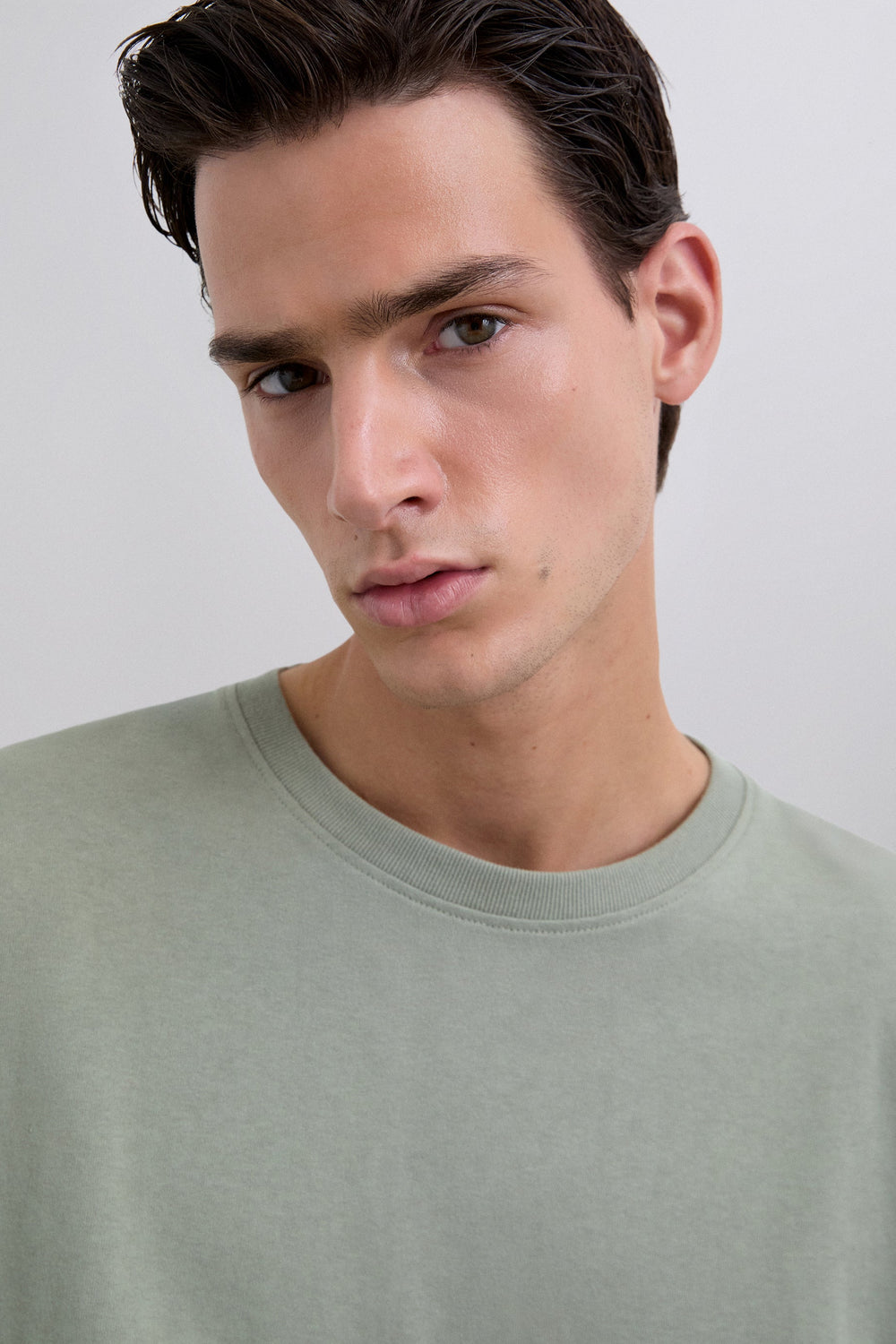 T-shirt gemaakt van 100% biologisch katoen. Korte mouw. Ronde hals. Boxy fit. Ribboorden.