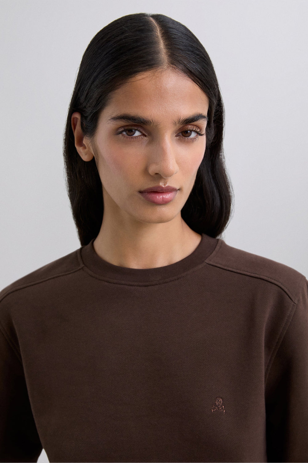 Sweater gemaakt van 100% BCI-katoen. Regular fit, ronde hals, lange mouwen met geribde boorden. Asymmetrische zoom, verlengde achterkant. Geborduurde doodskop op de borst.