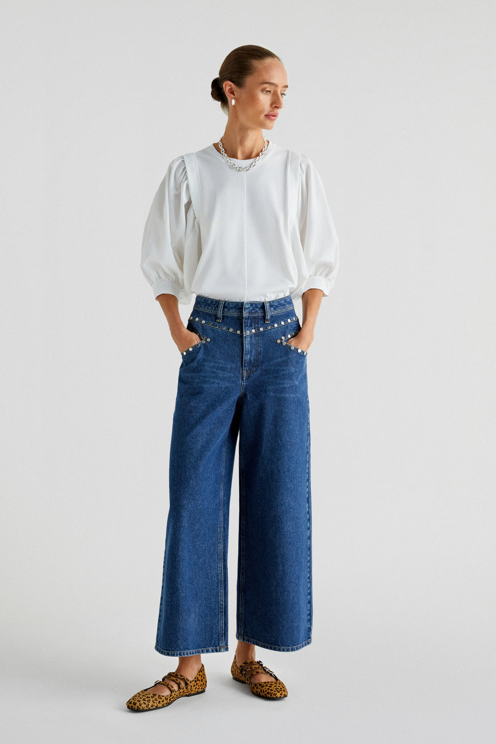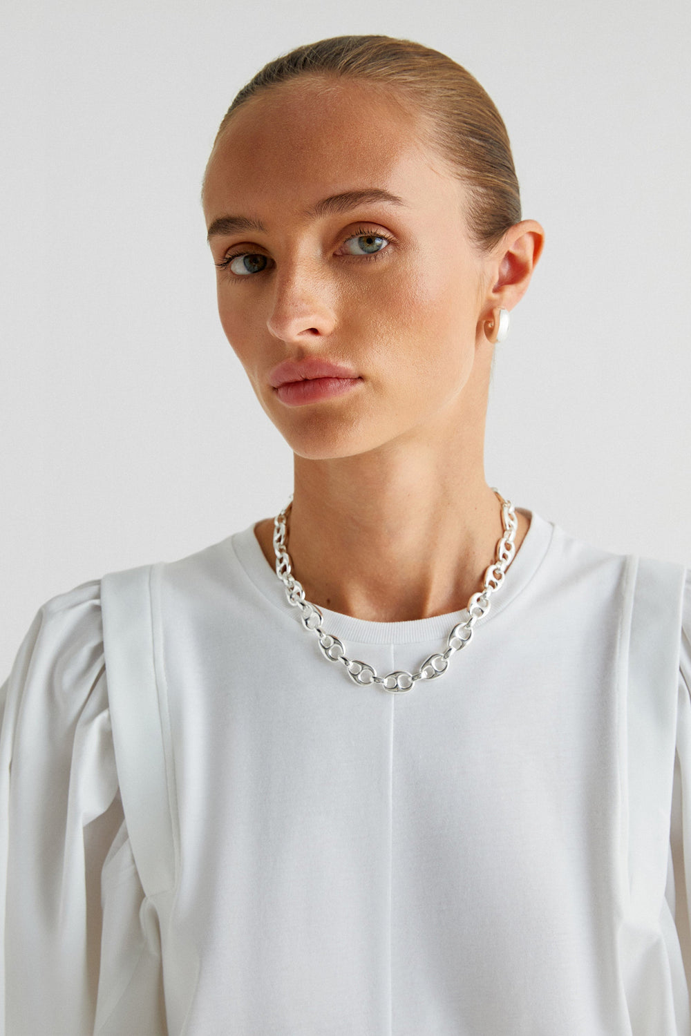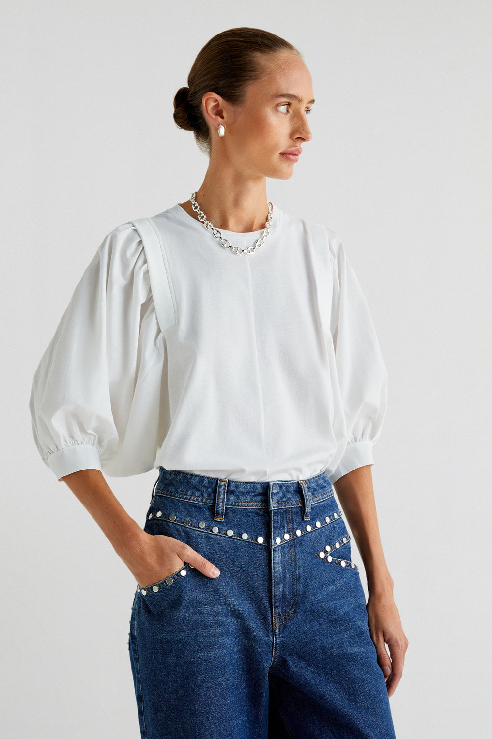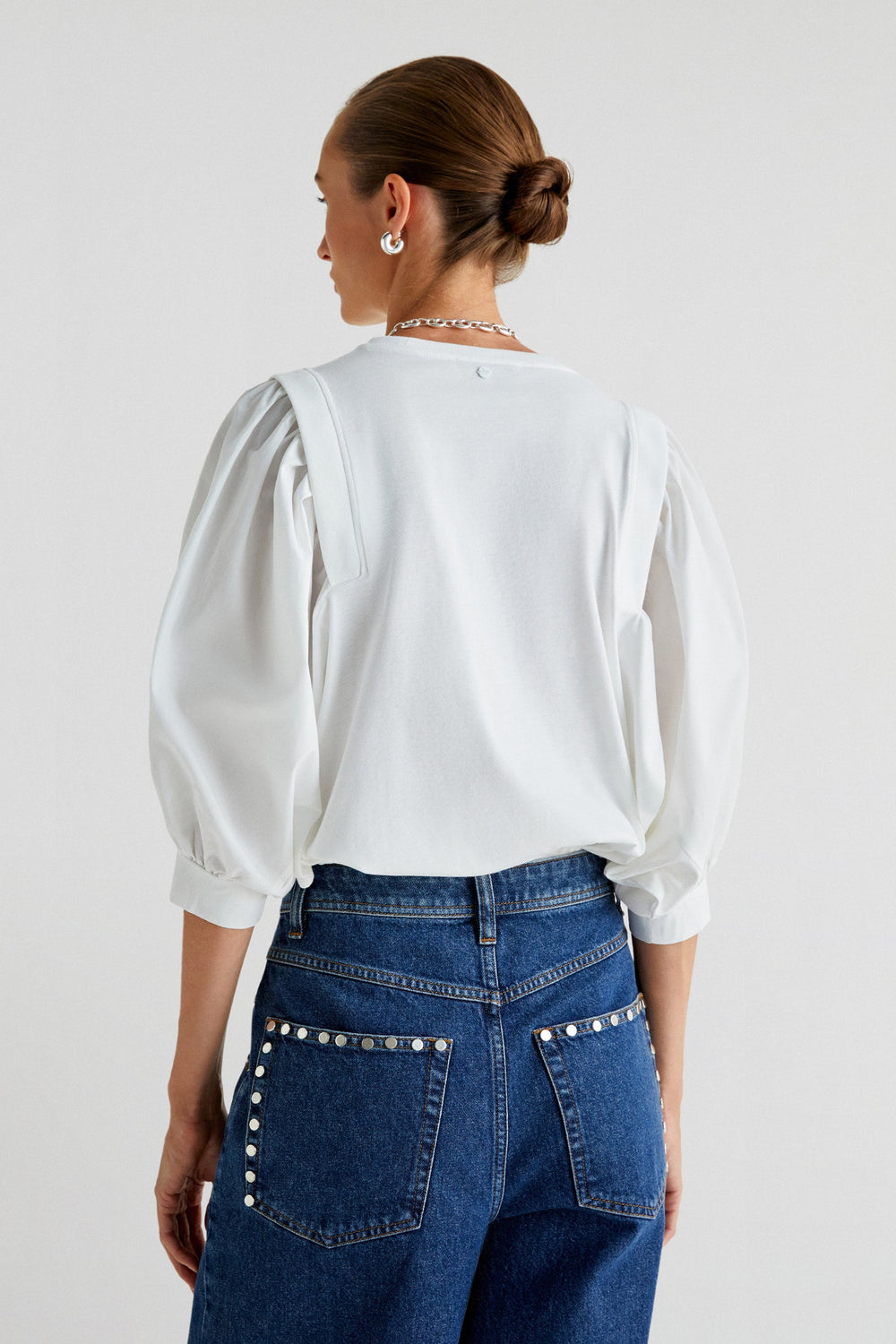 T-shirt made of 100% cotton. Regular fit, round neck and poplin puff sleeves.