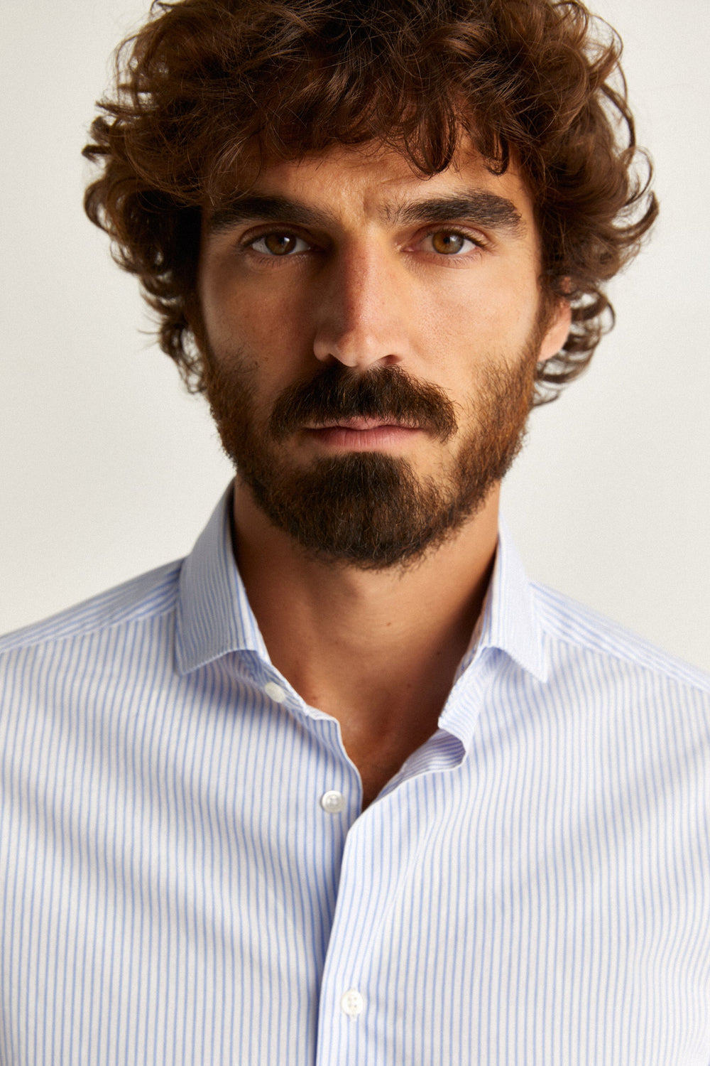 Dress shirt made of 100% cotton. Slim fit, Kent collar and button fastening. Long sleeves with buttoned cuffs.