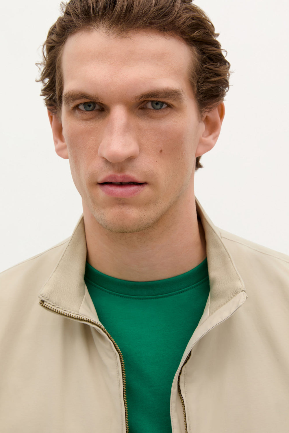 Bomber jacket made of a cotton and technical fabric blend. Regular fit, ribbed collar and zip fastening. Long sleeves with stretch cuffs and pockets with snap button fastening.