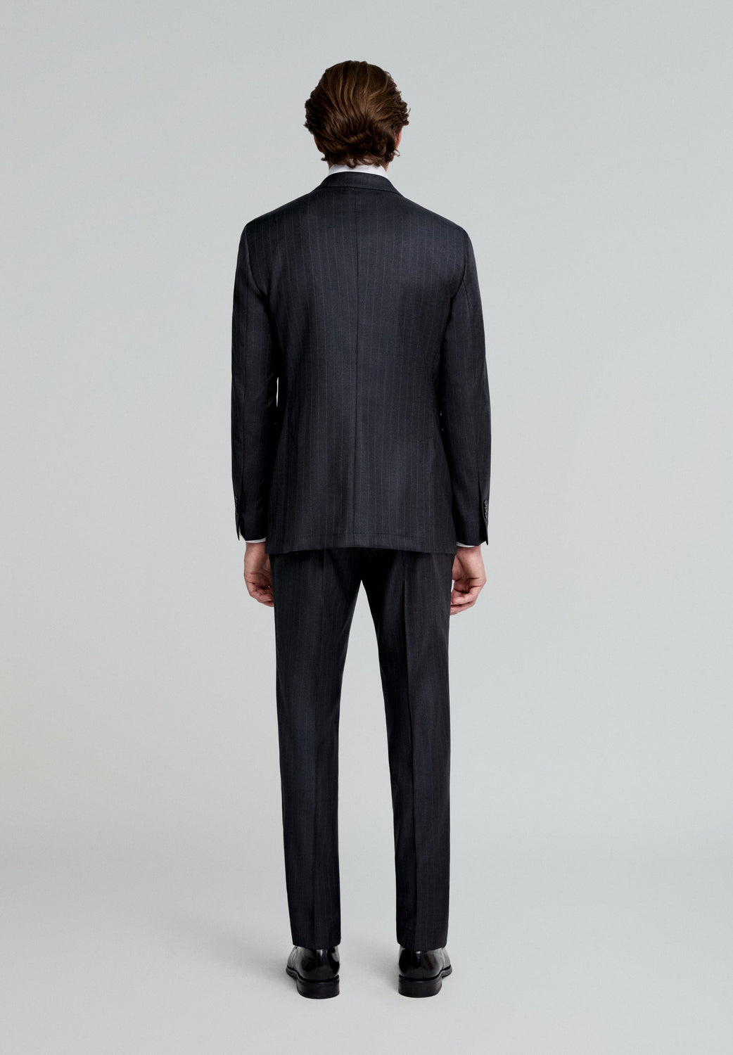 Pantalon habillé à rayures, confectionné en 100 % laine. Coupe droite, fermeture boutonnée et fermeture Éclair pour élargir la taille et poches sur les côtés. Passants de ceinture.