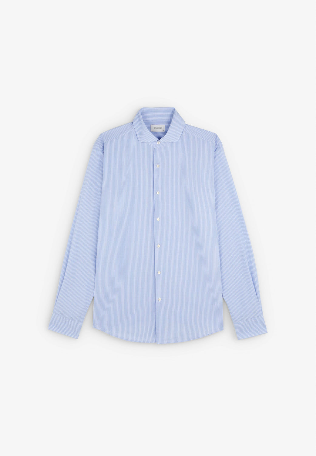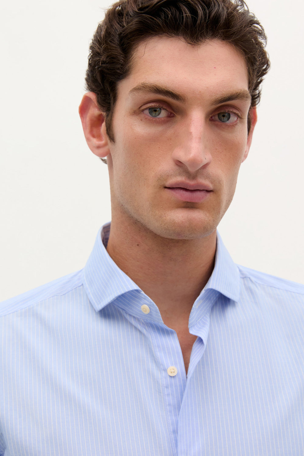 Gestreept overhemd van 100% katoen. Regular fit, Italiaanse kraag en knoopsluiting. Lange mouw met manchet en knoopsluiting.