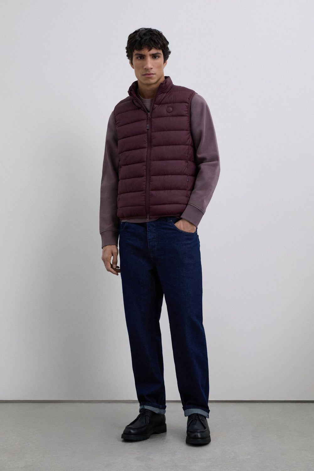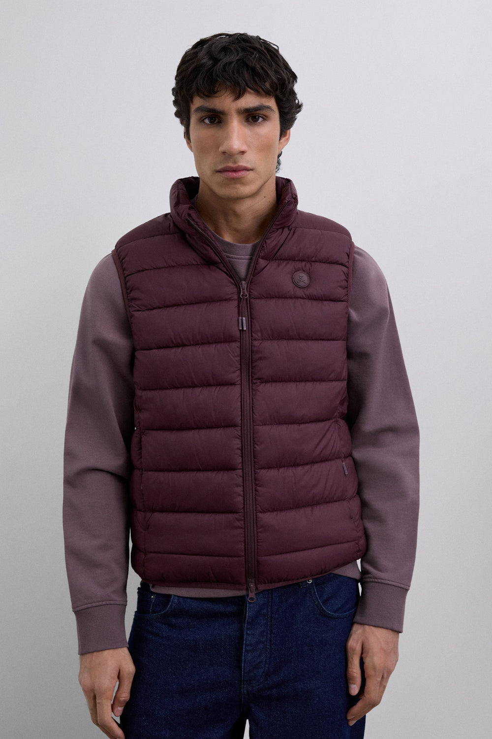 Gewatteerde bodywarmer. Waterafstotend. Voering gemaakt van technische stof. Verborgen zijzakken met fleecevoering. Sluiting met gegraveerde tweewegrits. Rubberen patch met bijpassend logo op de borst.
