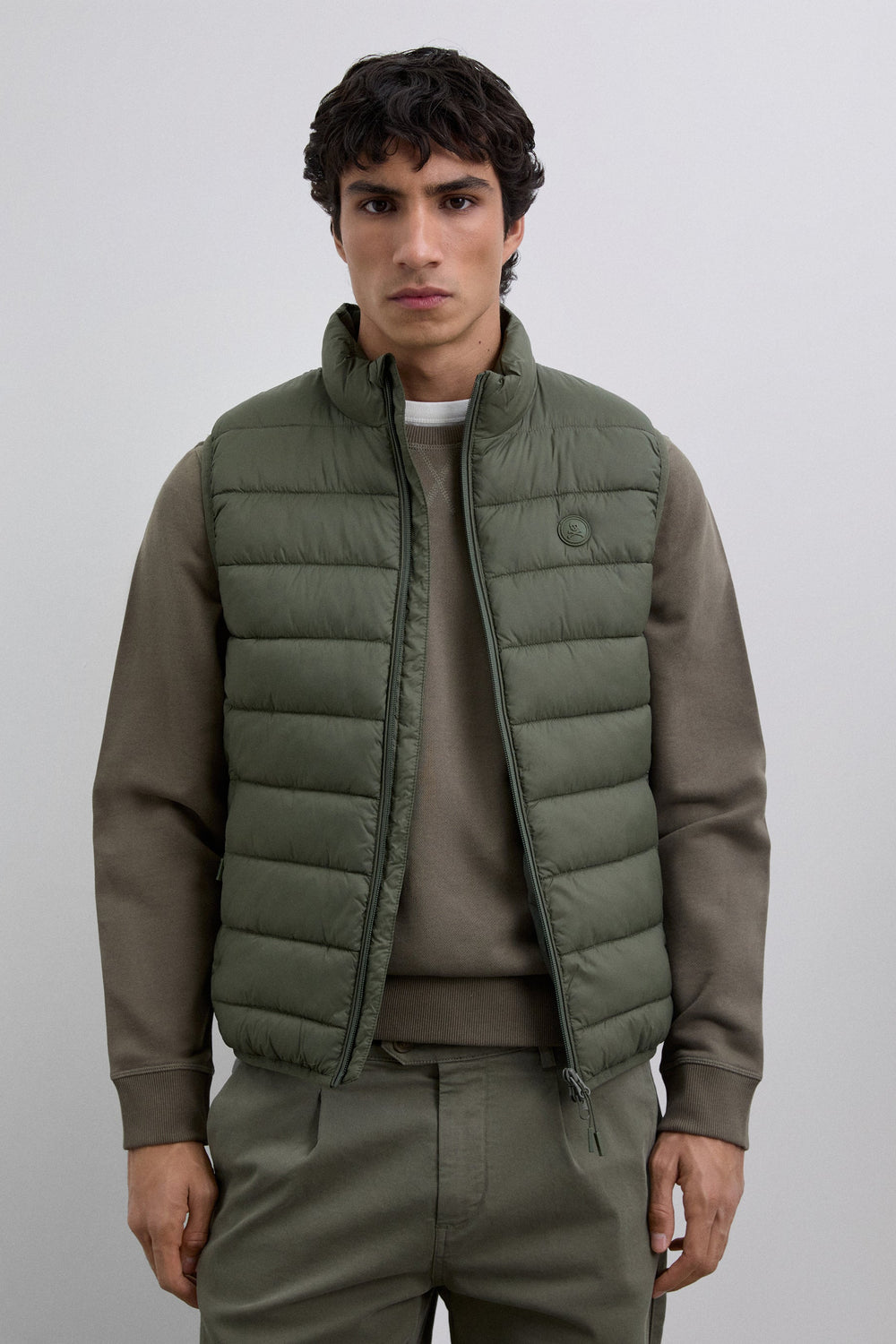 Gewatteerde bodywarmer. Waterafstotend. Voering gemaakt van technische stof. Verborgen zijzakken met fleecevoering. Sluiting met gegraveerde tweewegrits. Rubberen patch met bijpassend logo op de borst.