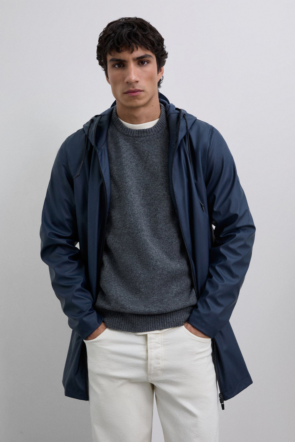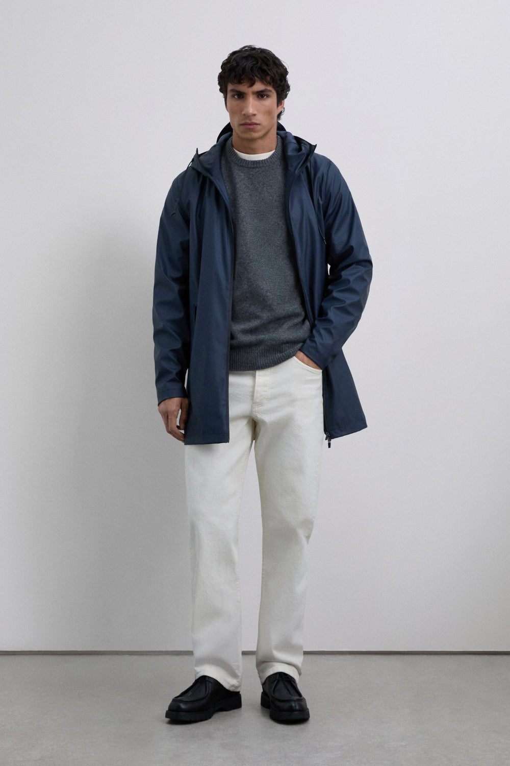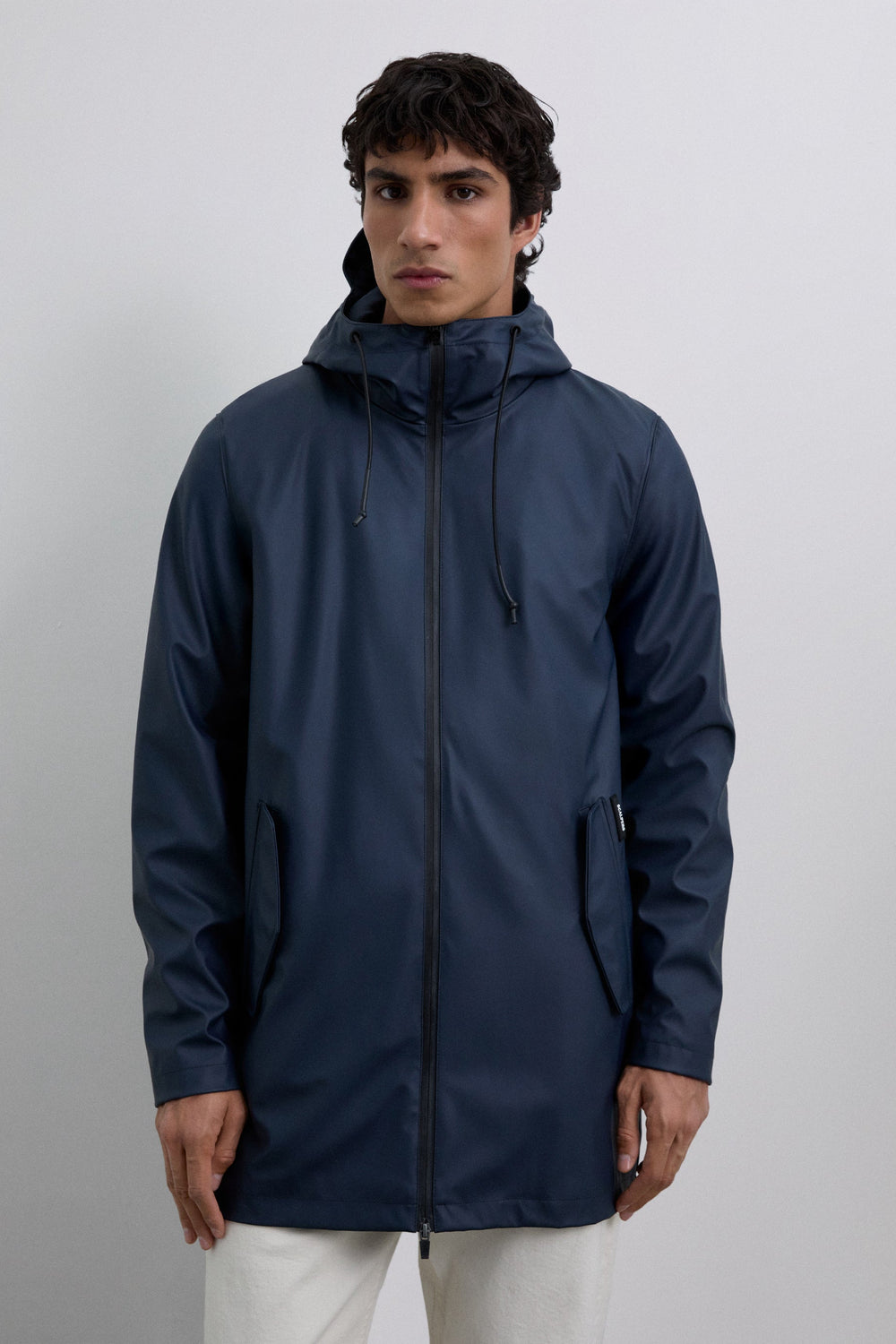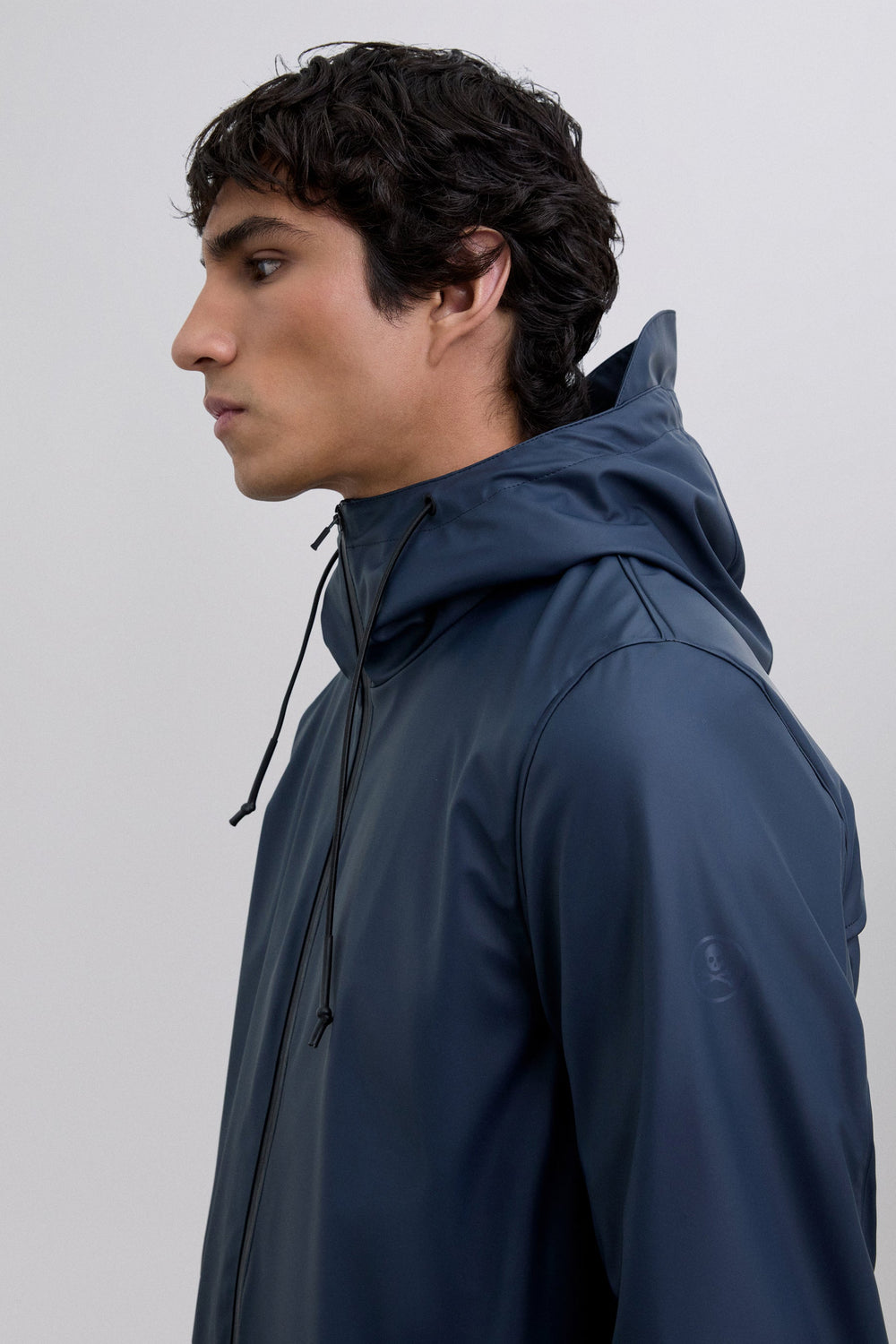 Waterdicht jack. Kraag met capuchon met verstelbaar koord. Sluiting met thermisch gesealde tweewegrits. Lange mouw. Zijzakken met knoopbies en drukknoop. Contrasterende rubberen logodetails op de onderkant van de voorkant en ton sur ton doodshoofd op de ritssluiting.