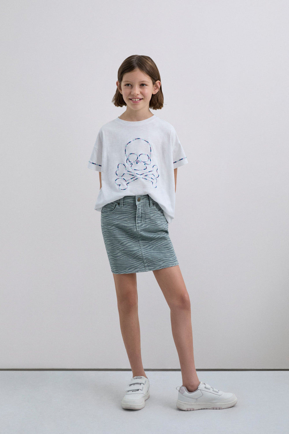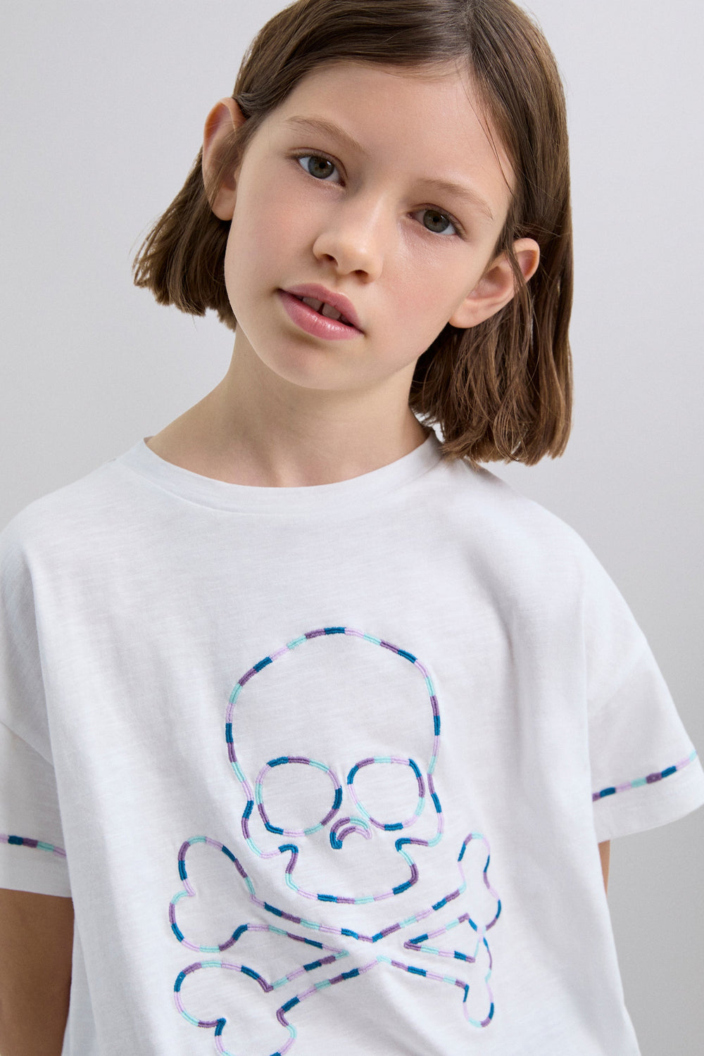 T-shirt gemaakt van 100% BCI-katoen. Regular Fit, ronde hals en korte mouw. Doodshoofdprint geborduurd op borst. Geborduurde lijn op de mouw.