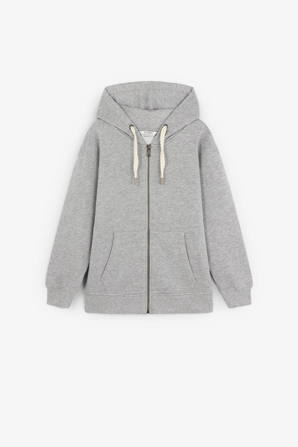 Sweater gemaakt van 100% BCI-katoen. Capuchon. Lange mouw. Ribboorden Ritssluiting aan de voorkant en zakken aan de voorkant. Geborduurd logo op de rug.