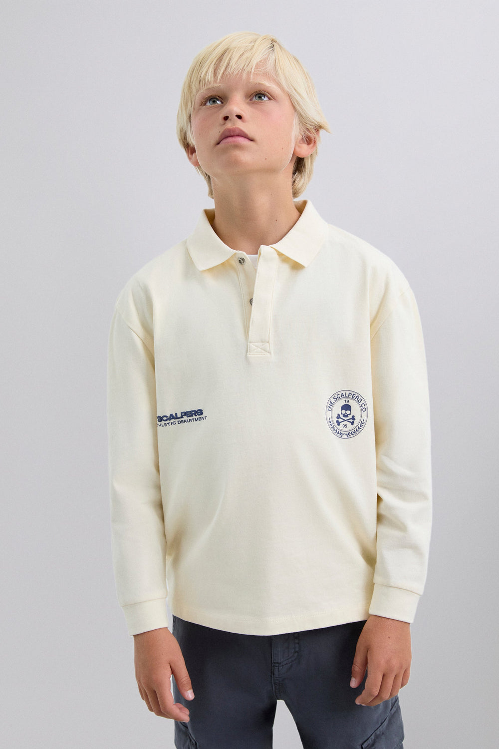 Polo gemaakt van 100% BCI-katoen. Regular fit, klassieke kraag met knopen en lange mouw. Logoprint op de voor- en achterkant en doodshoofd in reliëf.