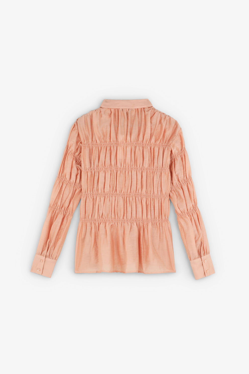Overhemd gemaakt van stof met structuur. Lange mouw met smock. Klassieke kraagsluiting aan de voorkant. Licht poffende lange mouw.