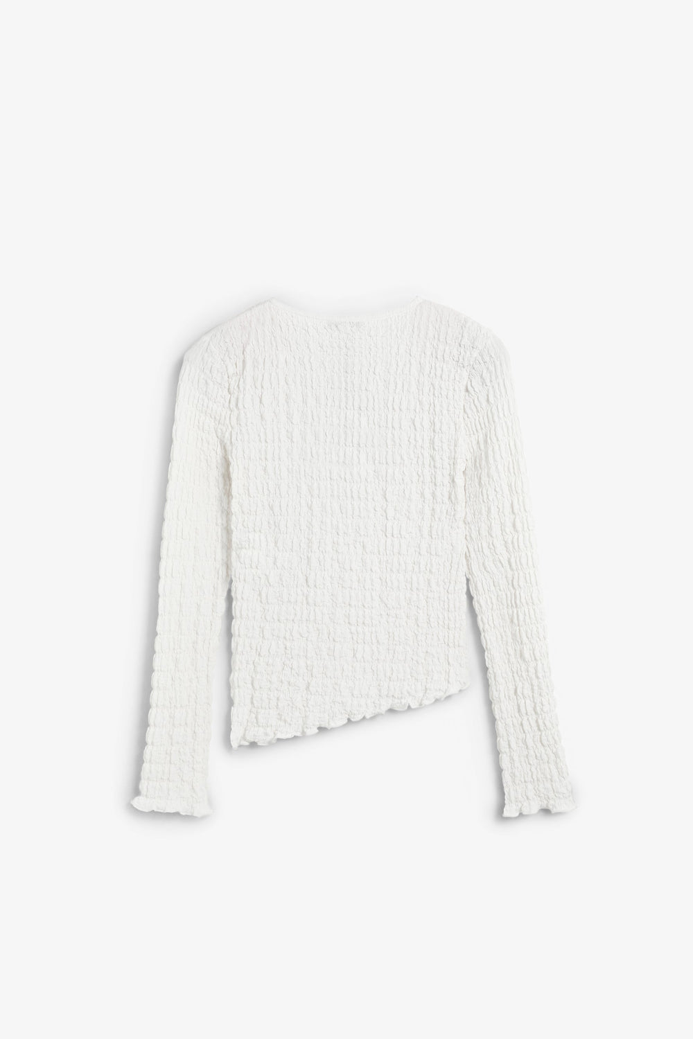 Top met ronde hals en lange mouw. Lichtgewicht stof met geplooide structuur.