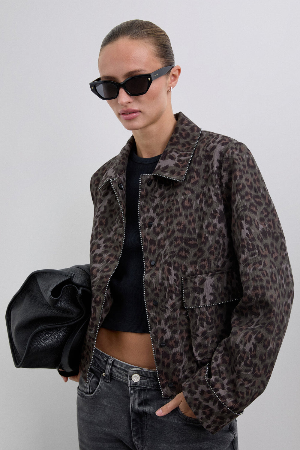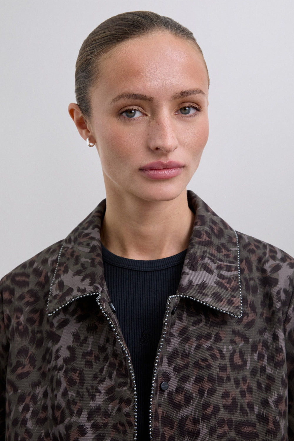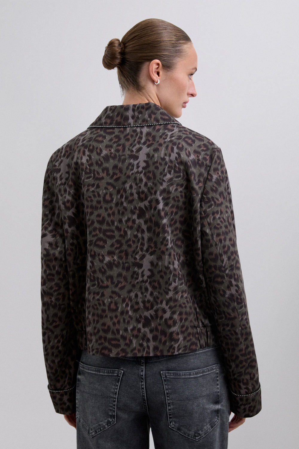Jack van 100% katoen met dierenprint. Voering met metallic studs. Lange mouw met omgeslagen manchet. Overhemdkraag. Knoopsluiting verborgen door een knoopbies en een zichtbare knoop. Twee klepzakken. Elastische band aan de zijkanten van de zoom.