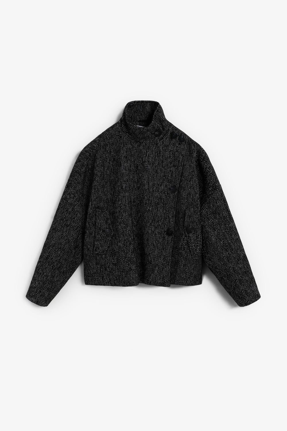 Double-breasted twill jack van wolmix. Regular fit. Lichtjes cropped. Hoge kraag. Lange mouw. Schuine klepzakken op de zijkant.