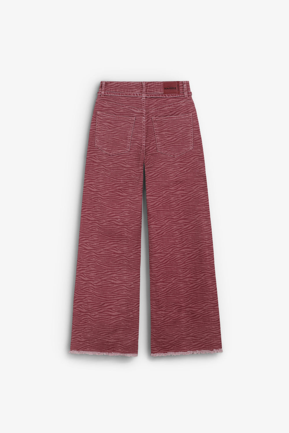 Broek gemaakt van 100% BCI-katoen. Dierenprint. Full length. Centrale naden. Gewassen effect. Ton sur ton taille met trekkoord. Steekzakken en zakken achter.