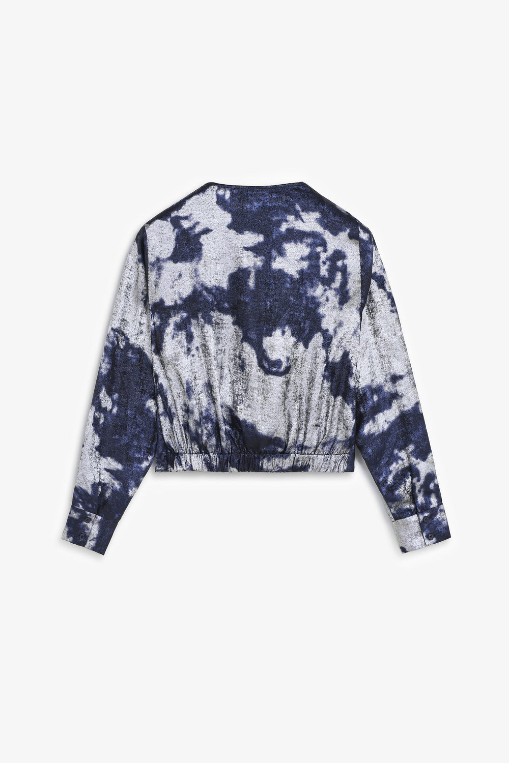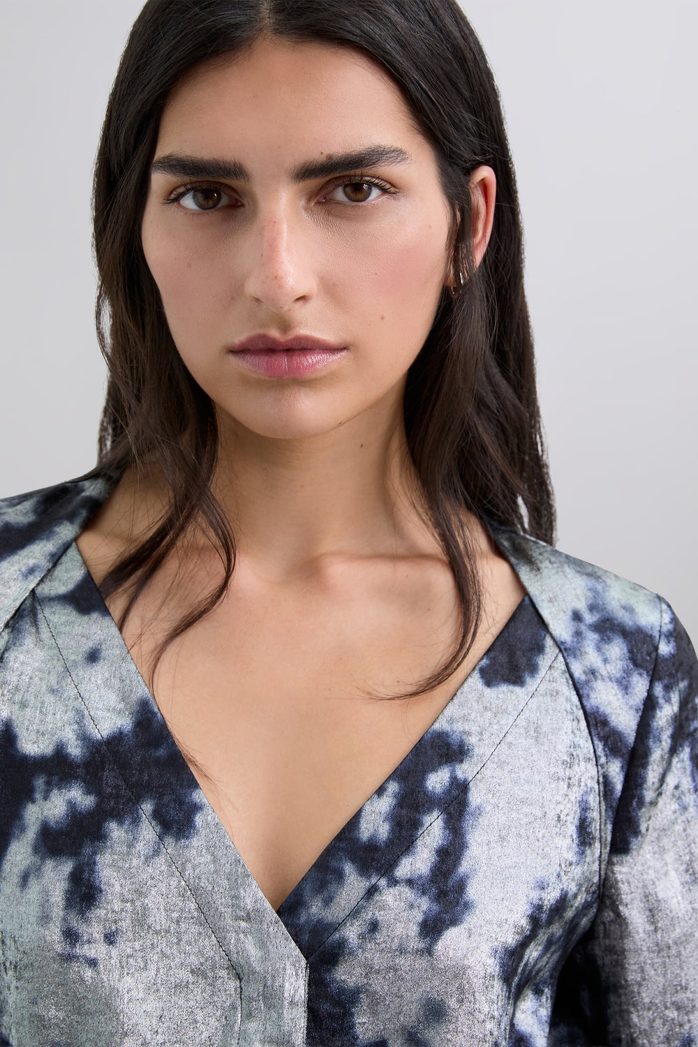Blouse van soepelvallende stof met tie-dye print en metallic details. Slim fit V-hals. Lange mouwen. Lichtjes cropped.