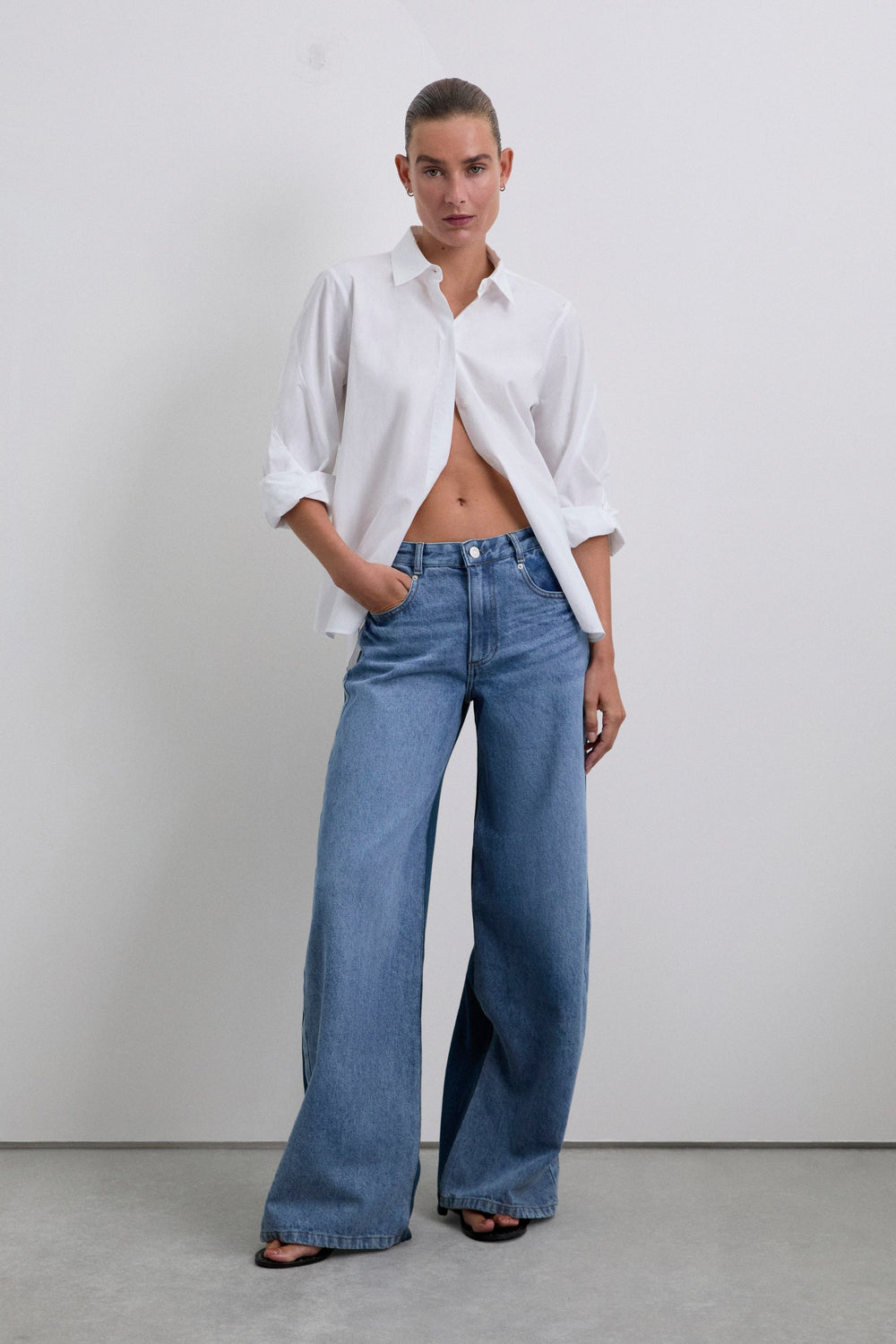 Pantalón denim confeccionado en algodón 100%. corte regular fit, bicolor, cierre con cremallera y botón, trabillas en cintura, cinco bolsillos.