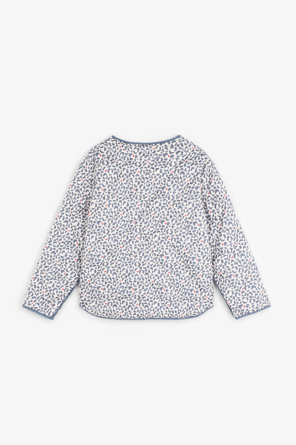 Chaqueta acolchada confeccionado en mezcla sintética. Animal print. Cierre mediante abotonadura. Cuello ligeramente en V. Manga larga. Dos bolsillos frontales.