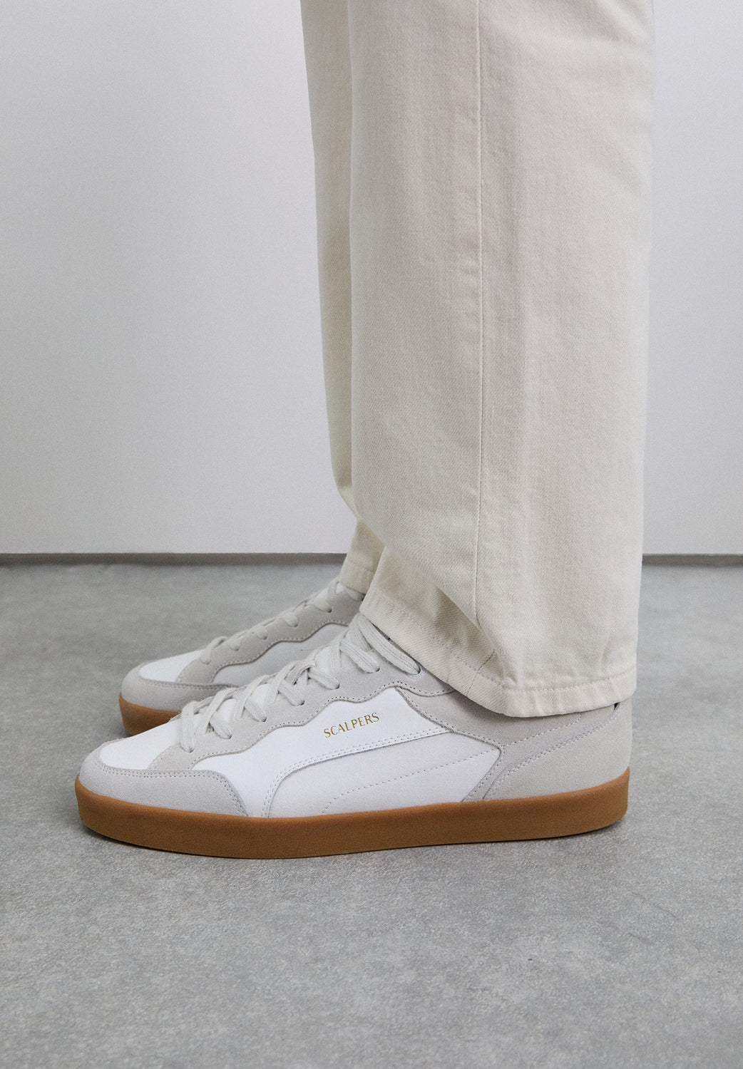 Sneakers van runderleer. Contrasterende veters. Logo gegraveerd op zijkant en tong. Rubberen zool. Ademende binnenzool van mesh. Gevoerd.