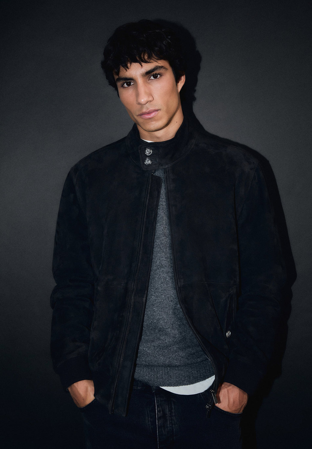 Jack van 100% geitenleer. Tweewegrits. Geribde manchetten en taille. Twee zakken met knoopsluiting aan de zijkant. Kraag met twee knopen.