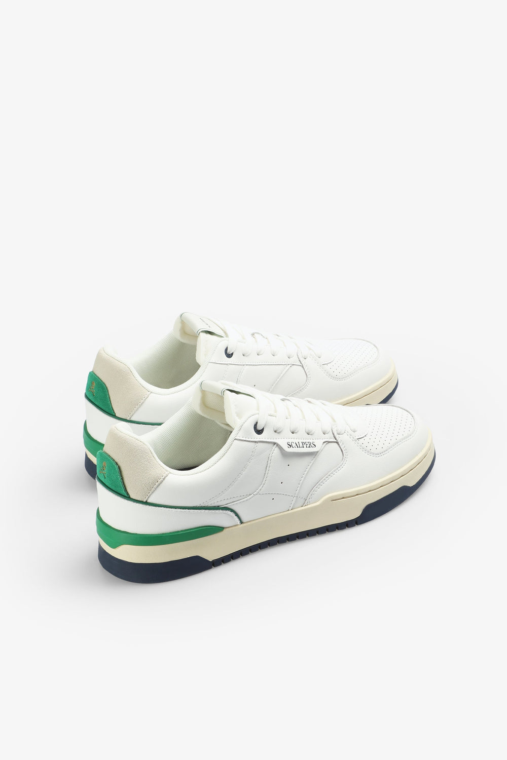 Sneakers confeccionadas en piel con logo lateral. Cierre con cordones, suela de TPR, detalle a contraste en talón y detalle de etiqueta en lengüeta personalizada.