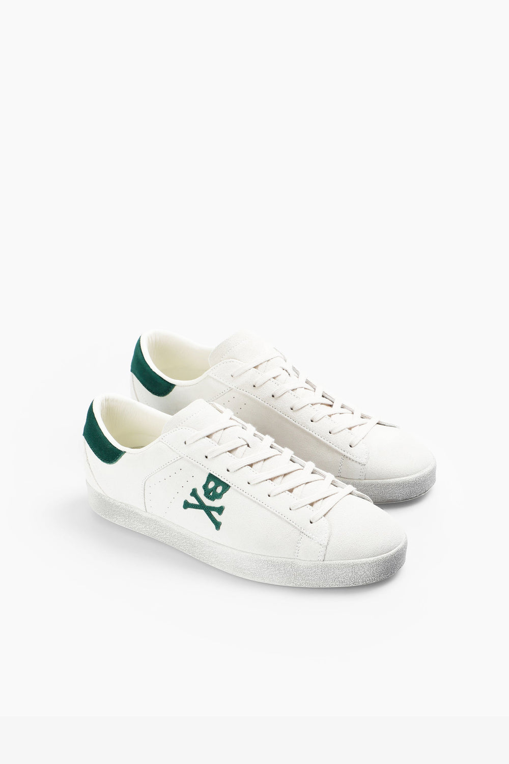 Sneakers met contrasterend doodshoofd op de zijkant gemaakt van suède. Ton sur ton vetersluiting. Rubberen zool. Contrastdetail op de hiel en ton sur ton logodetail.