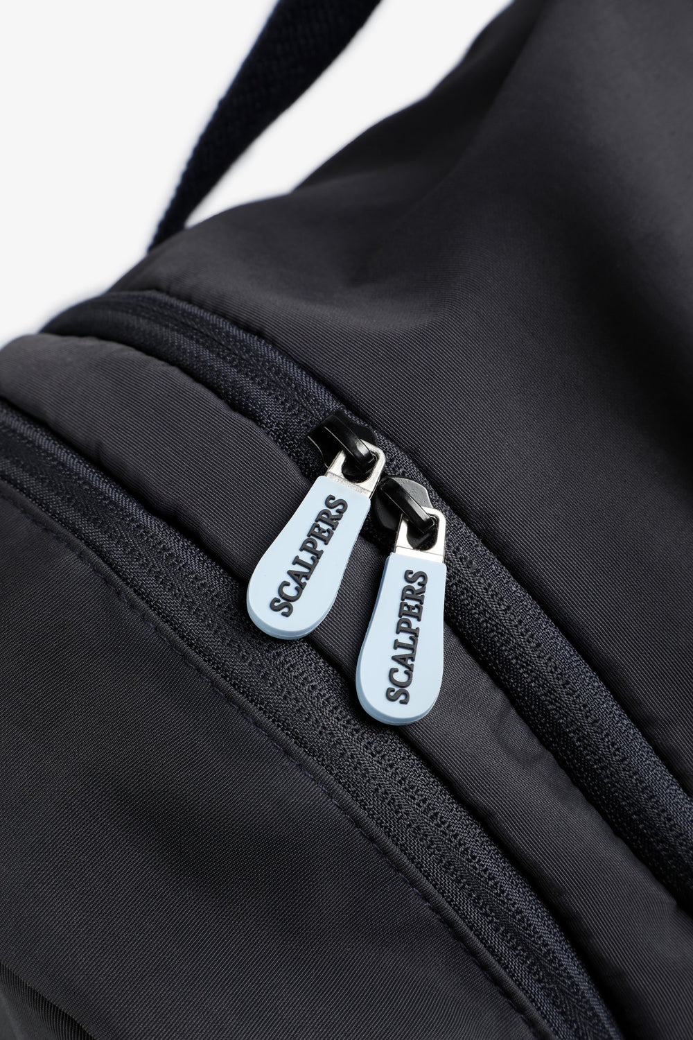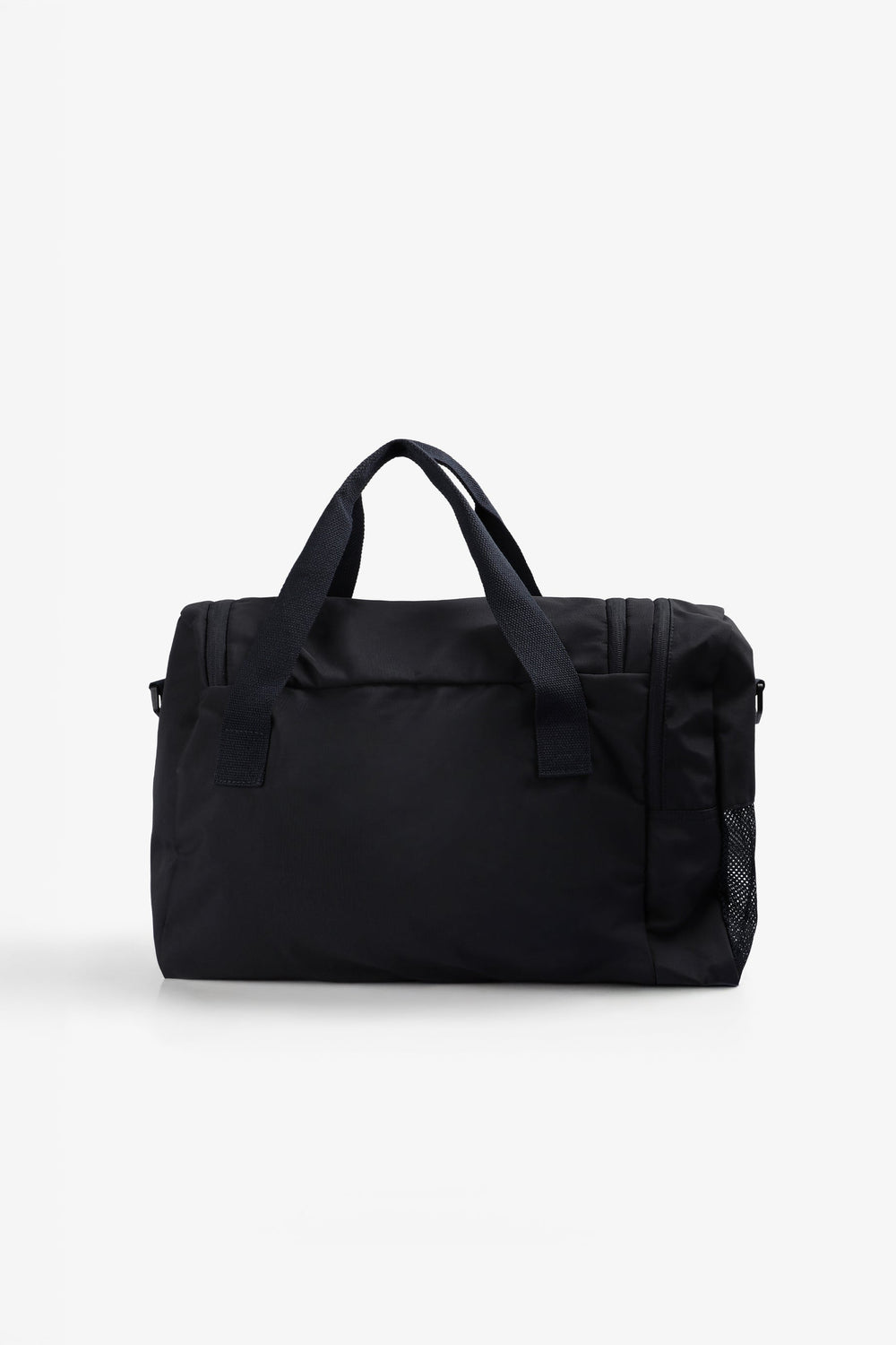 Bolsa confeccionada en tejido técnico. Compartimento principal con cierre por cremallera. Un bolsillo lateral con cremallera. Asa corta principal de hombro y asa larga desmontable. Print frontal con logo y calavera. Detalle de logo en cremallera.