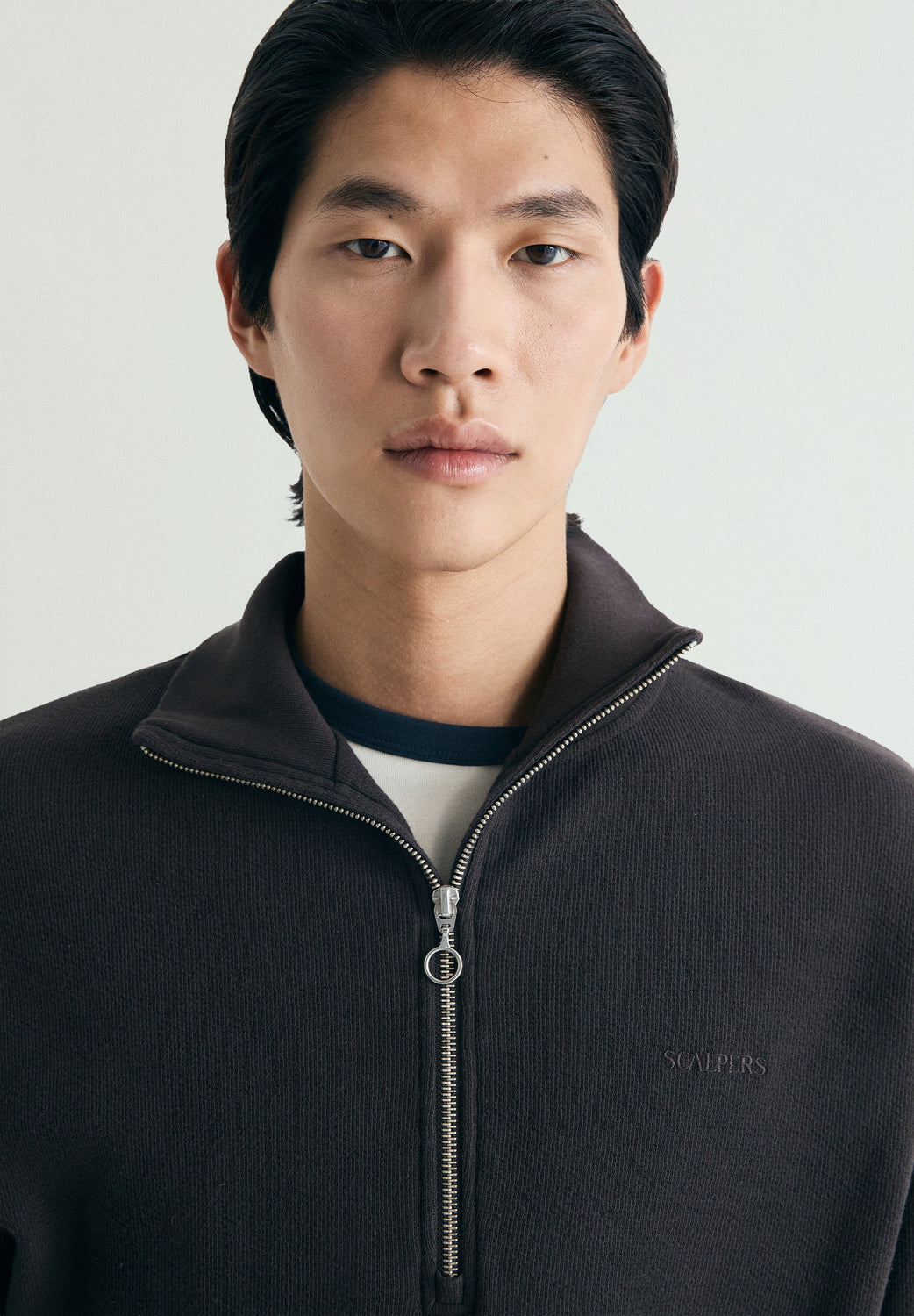 Sweatshirt made of 100% BCI cotton. Regular Fit. Long sleeves. High neck with zip. Faded style. Matching embroidered detail on the neck.
