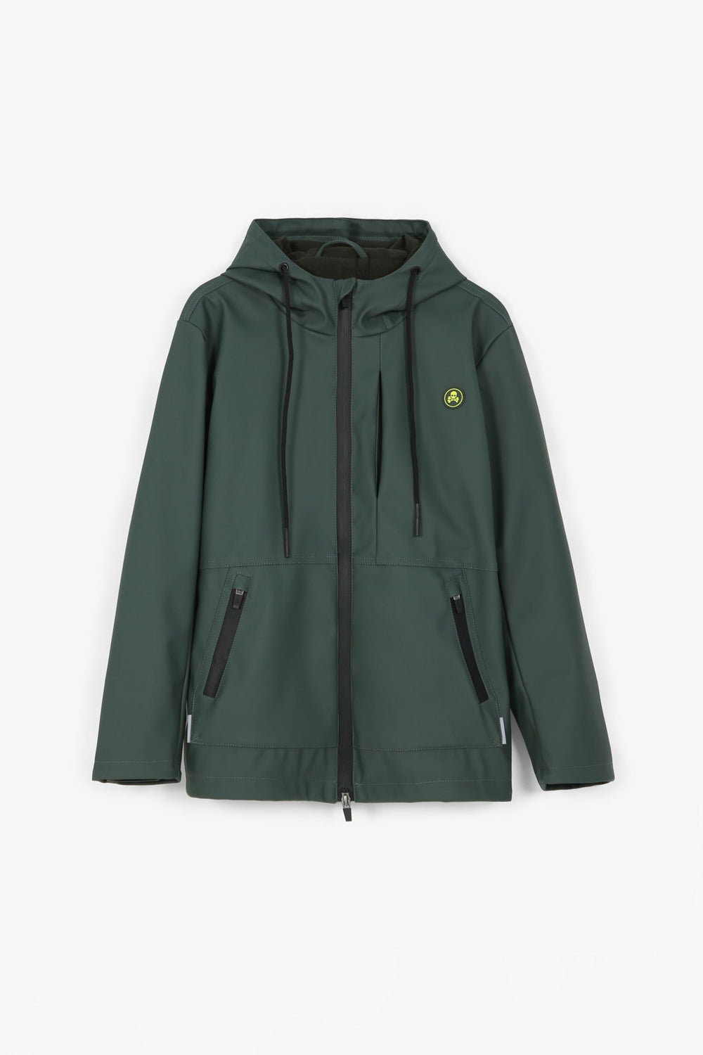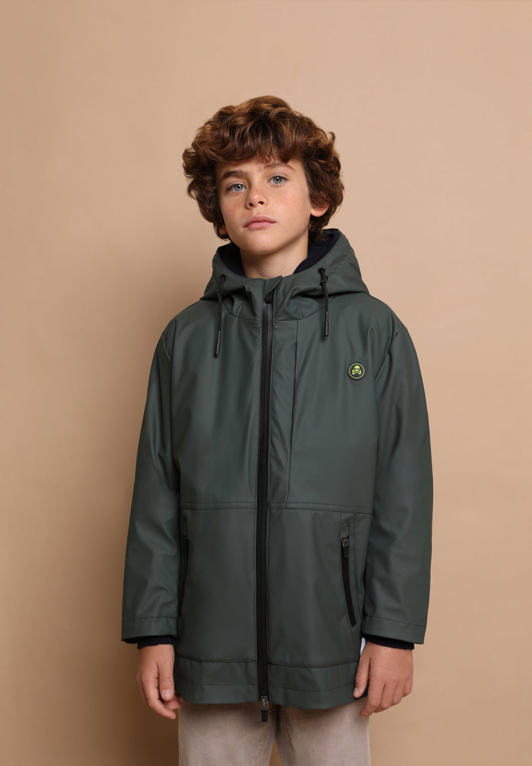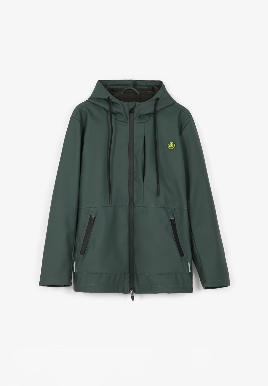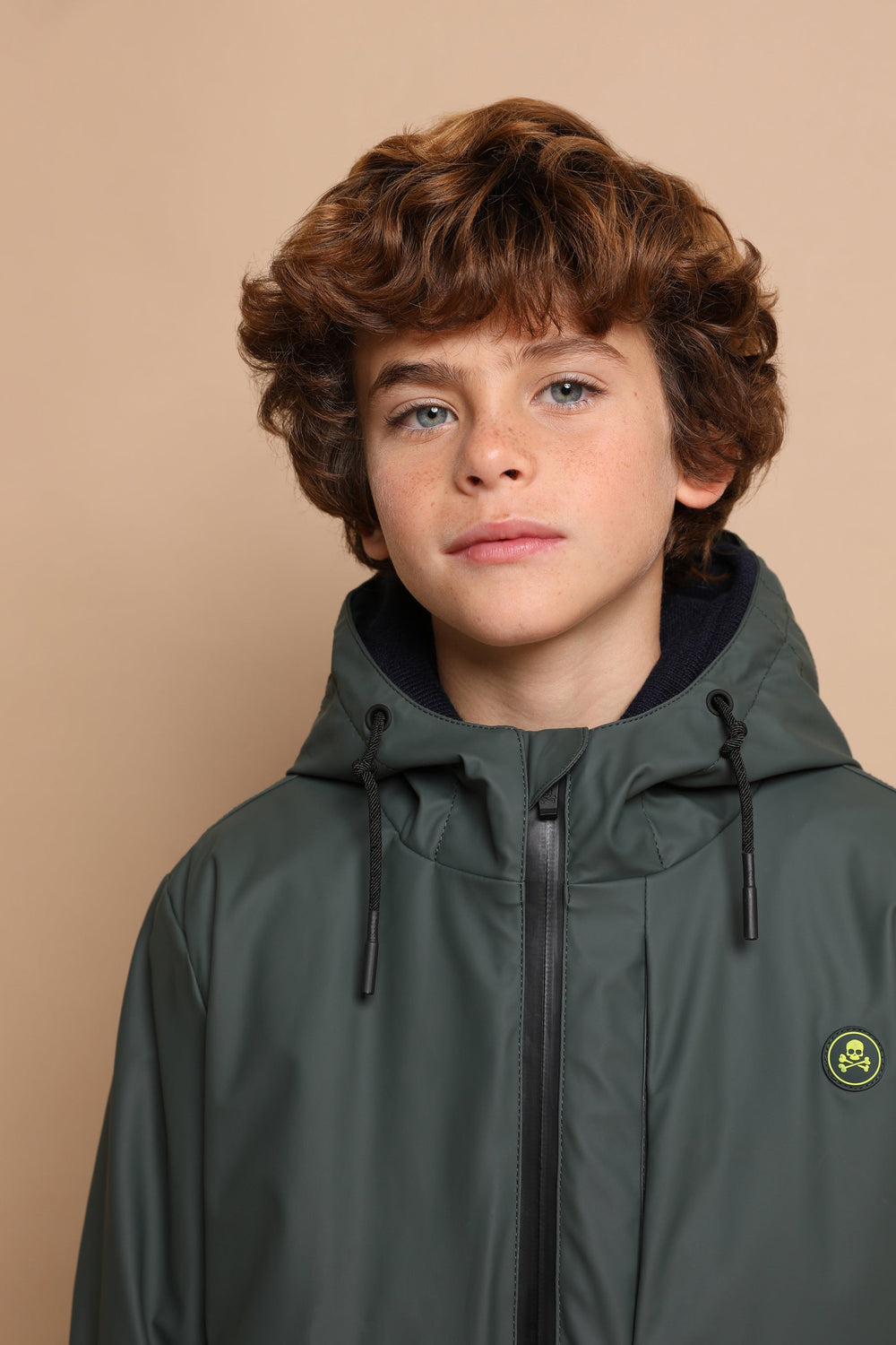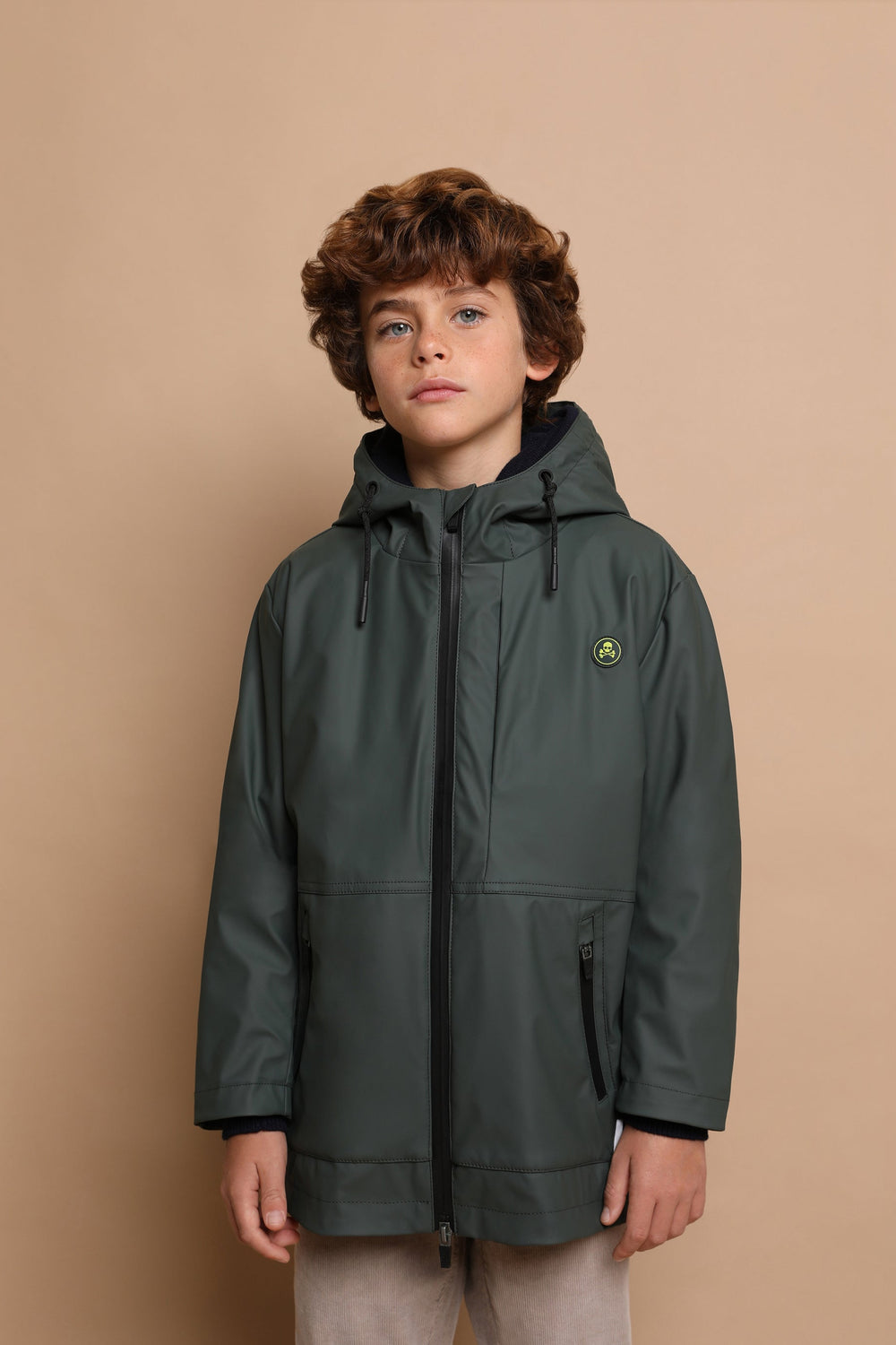 Waterproof jacket with skull. Regular fit, collar with hood and thermo-sealed zip fastening. Featuring fleece lining.