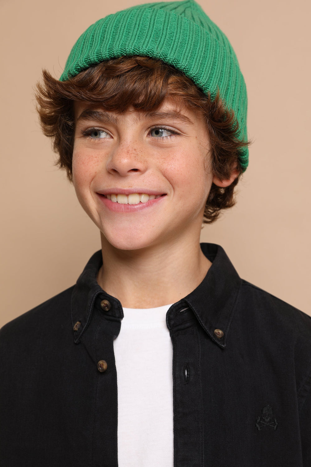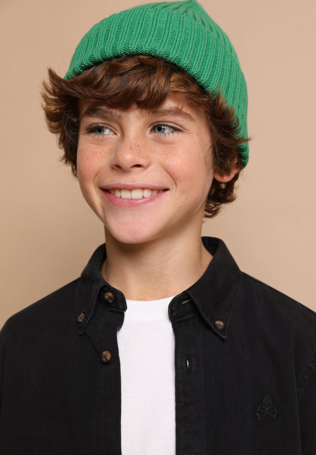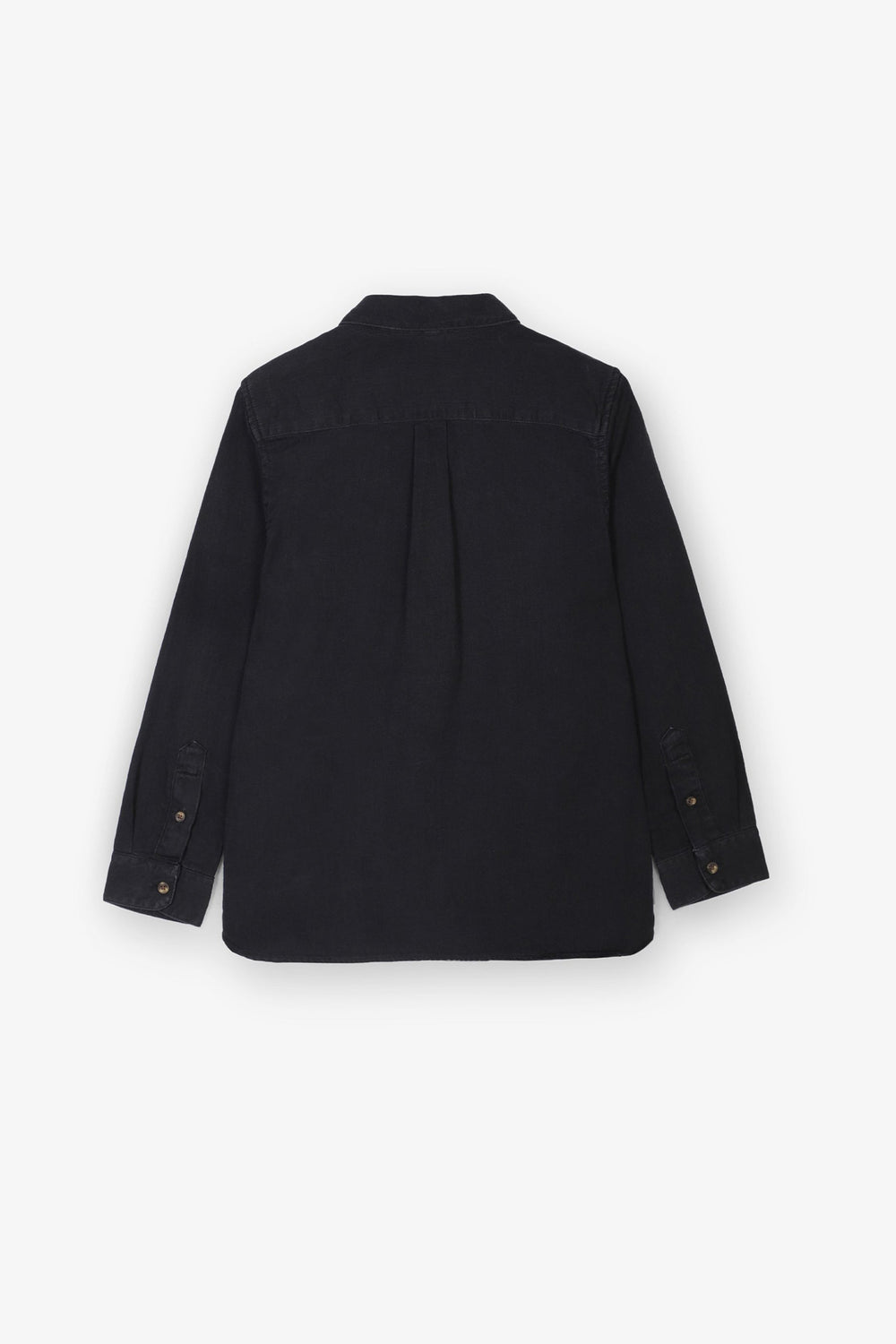 Dark denim shirt with matching embroidered skull in cotton and lyocell blend. Regular fit, collar with buttons and button fastening. Long sleeves with buttoned cuffs.