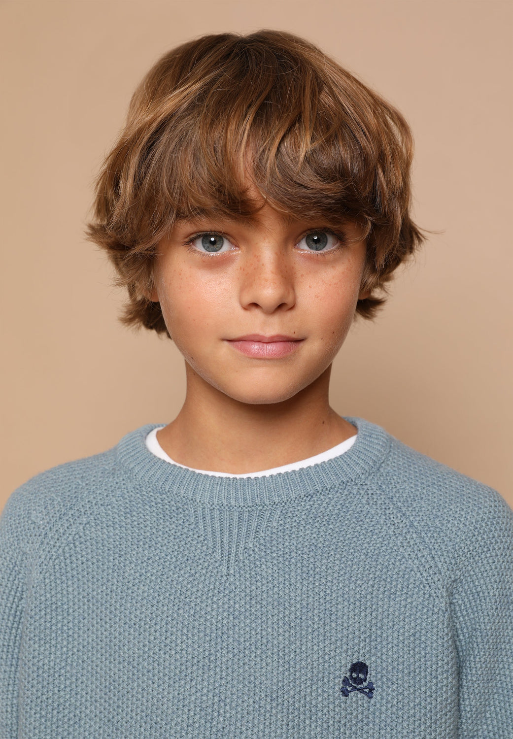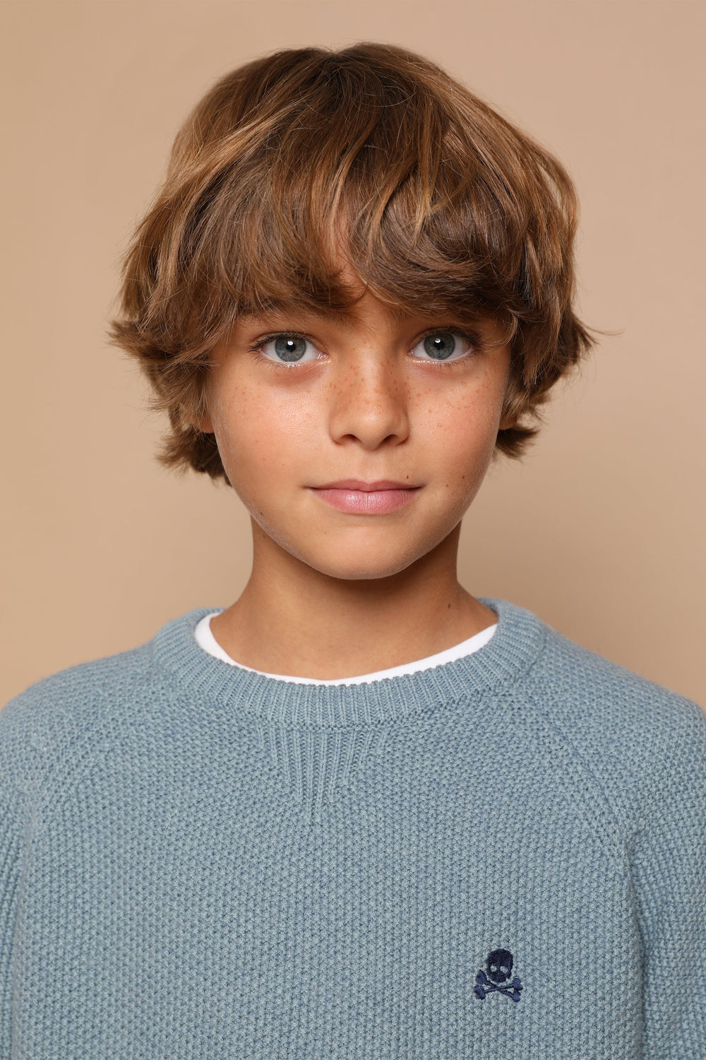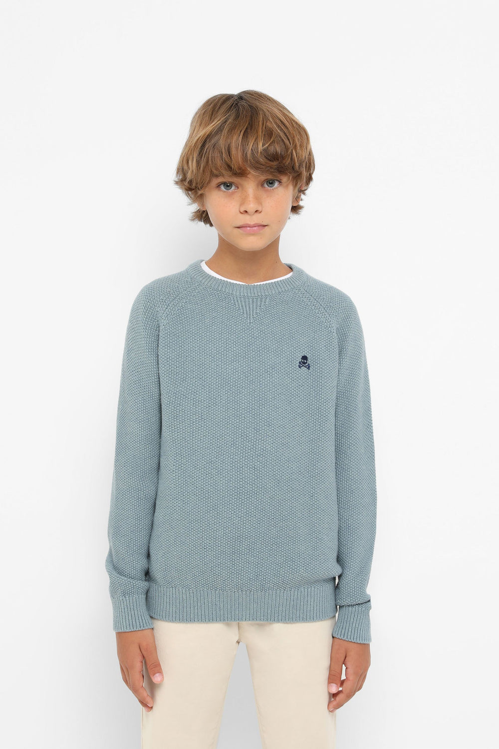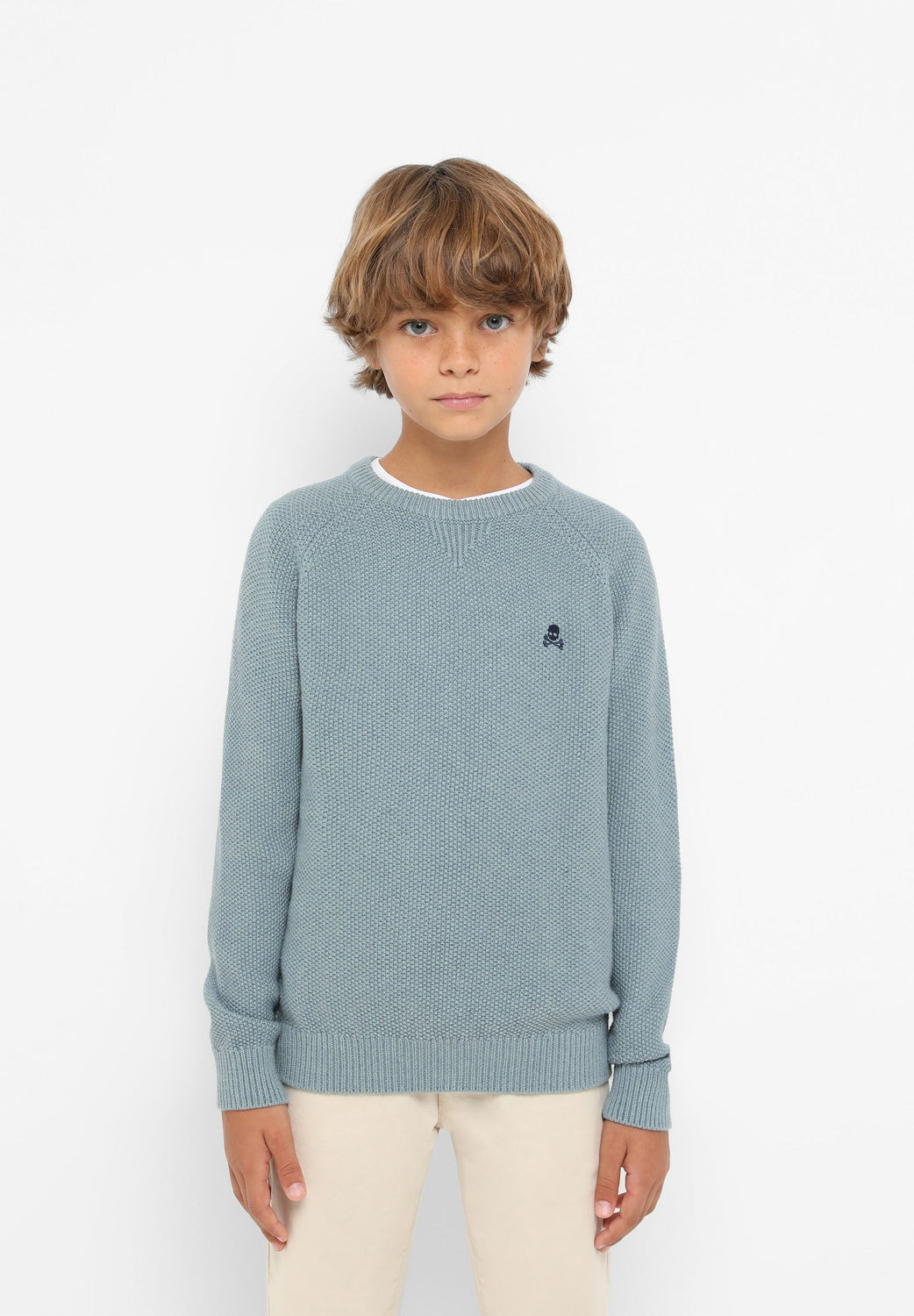 Knit sweater made of a wool and cotton blend. Regular fit, round neck and long sleeves. Contrasting skull.