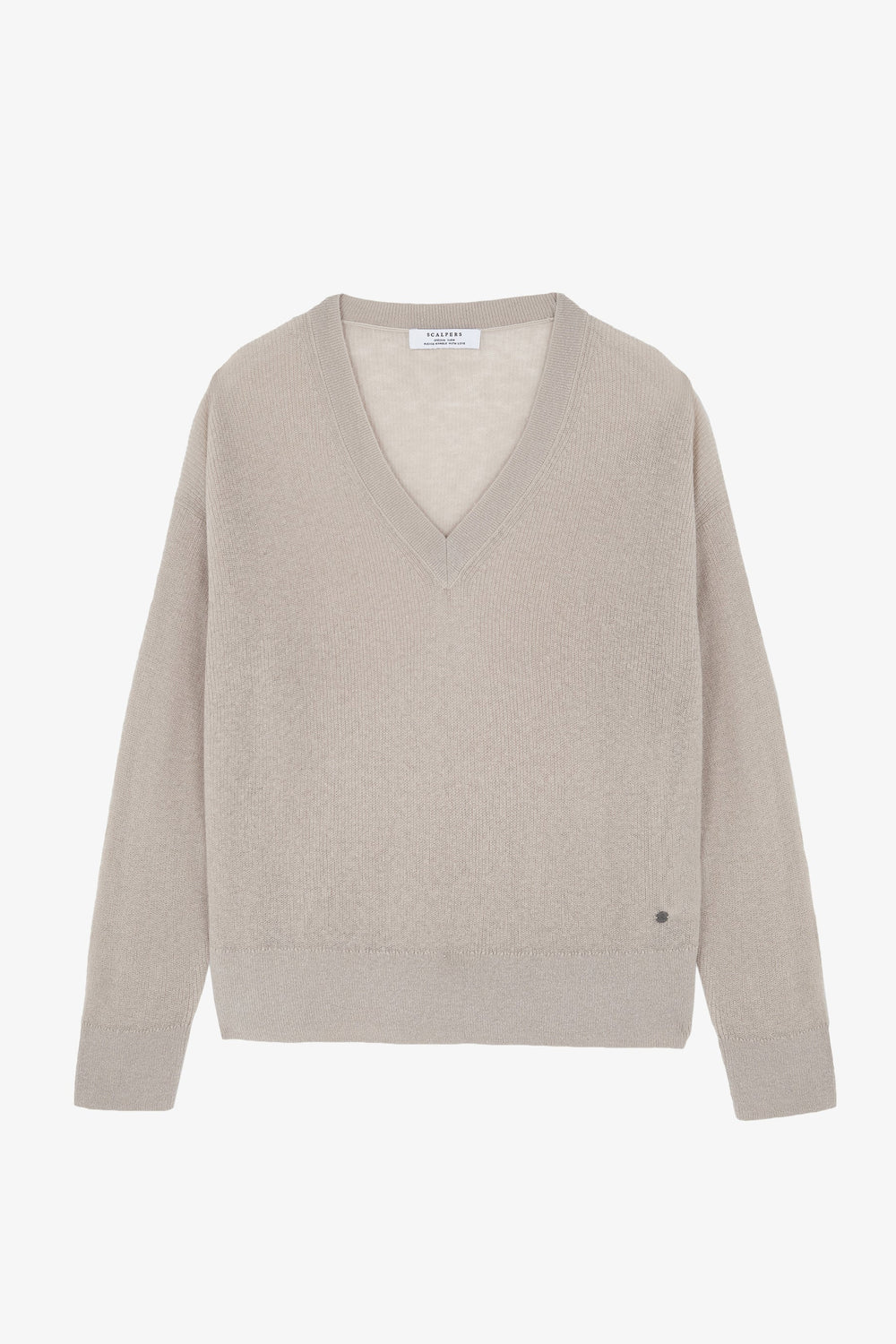 Knit sweater made of a wool and alpaca blend. Regular fit, V-neck and long sleeves.
