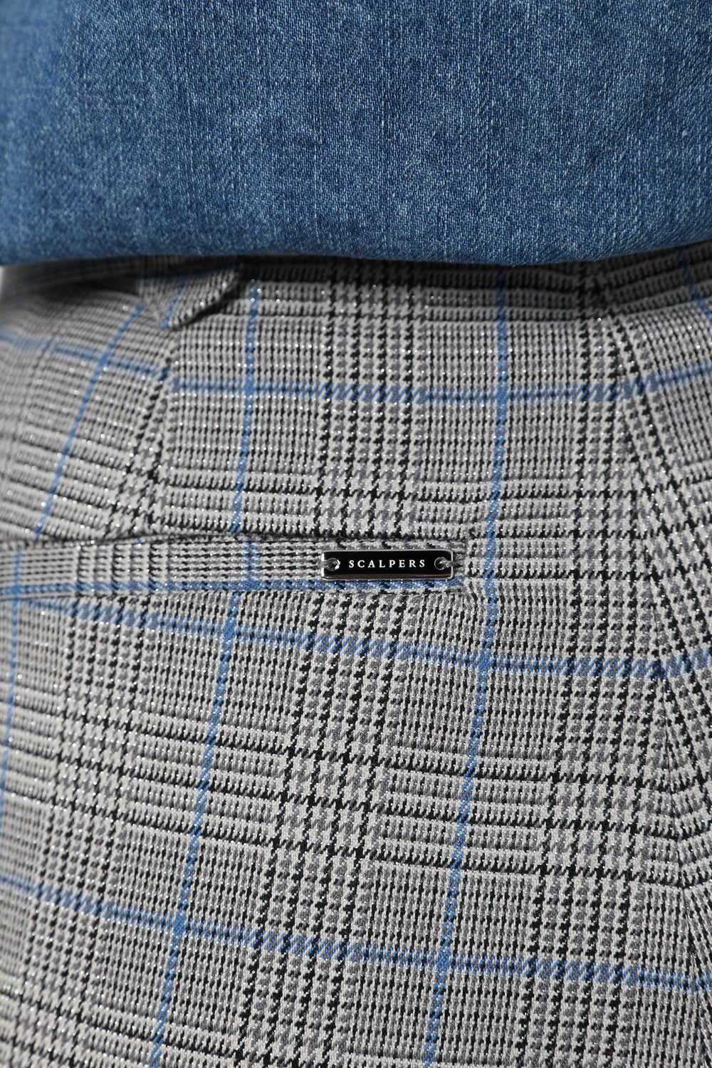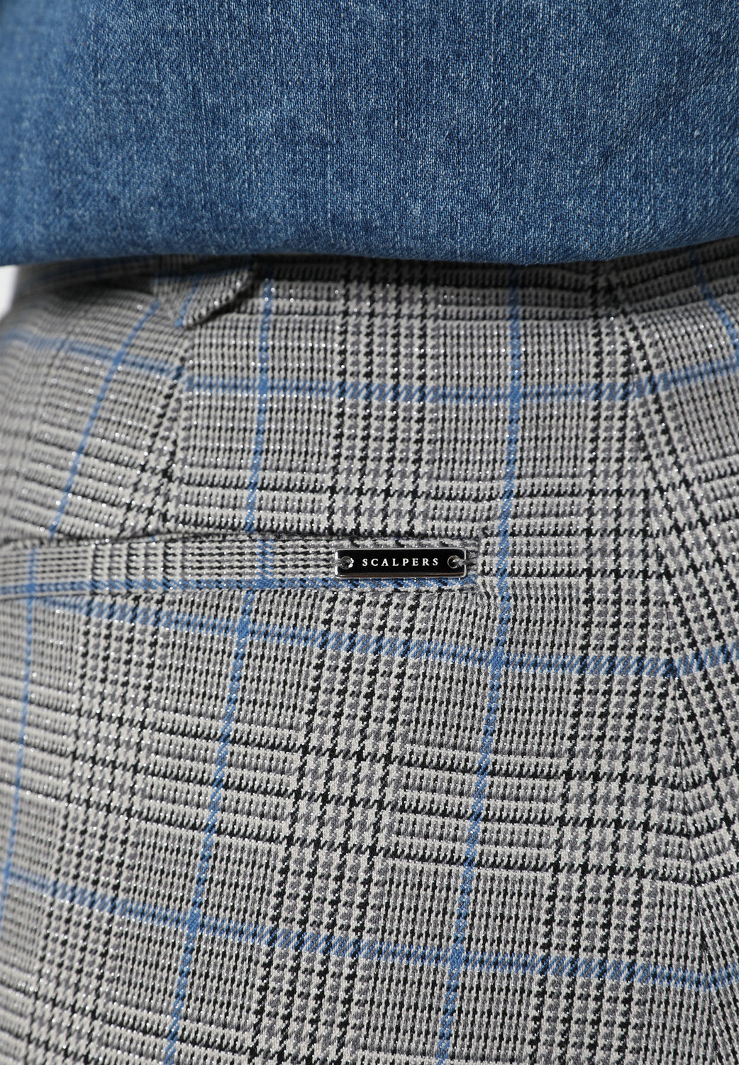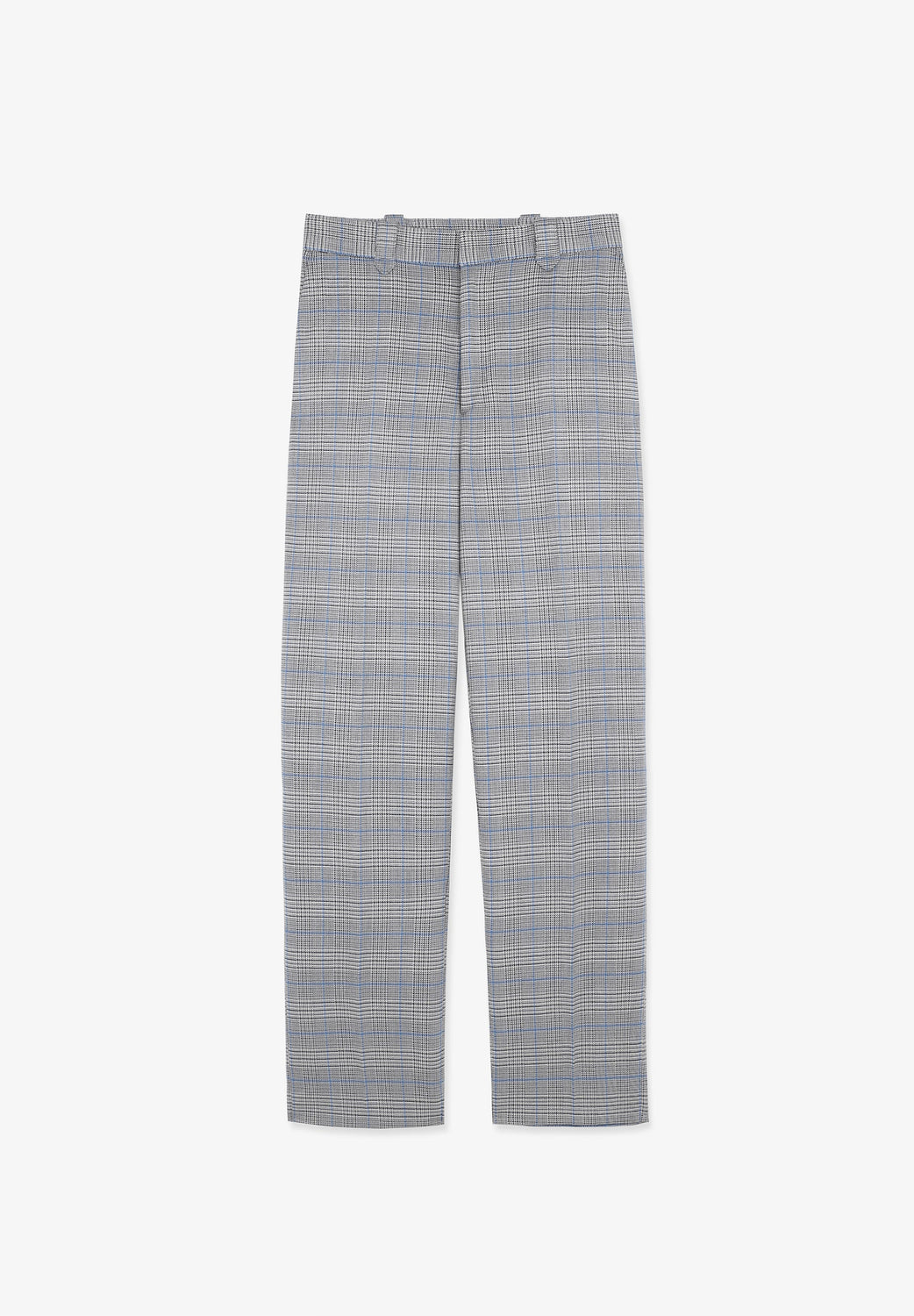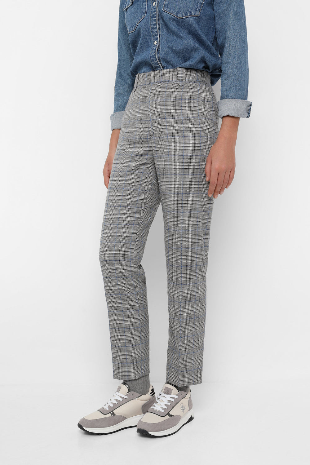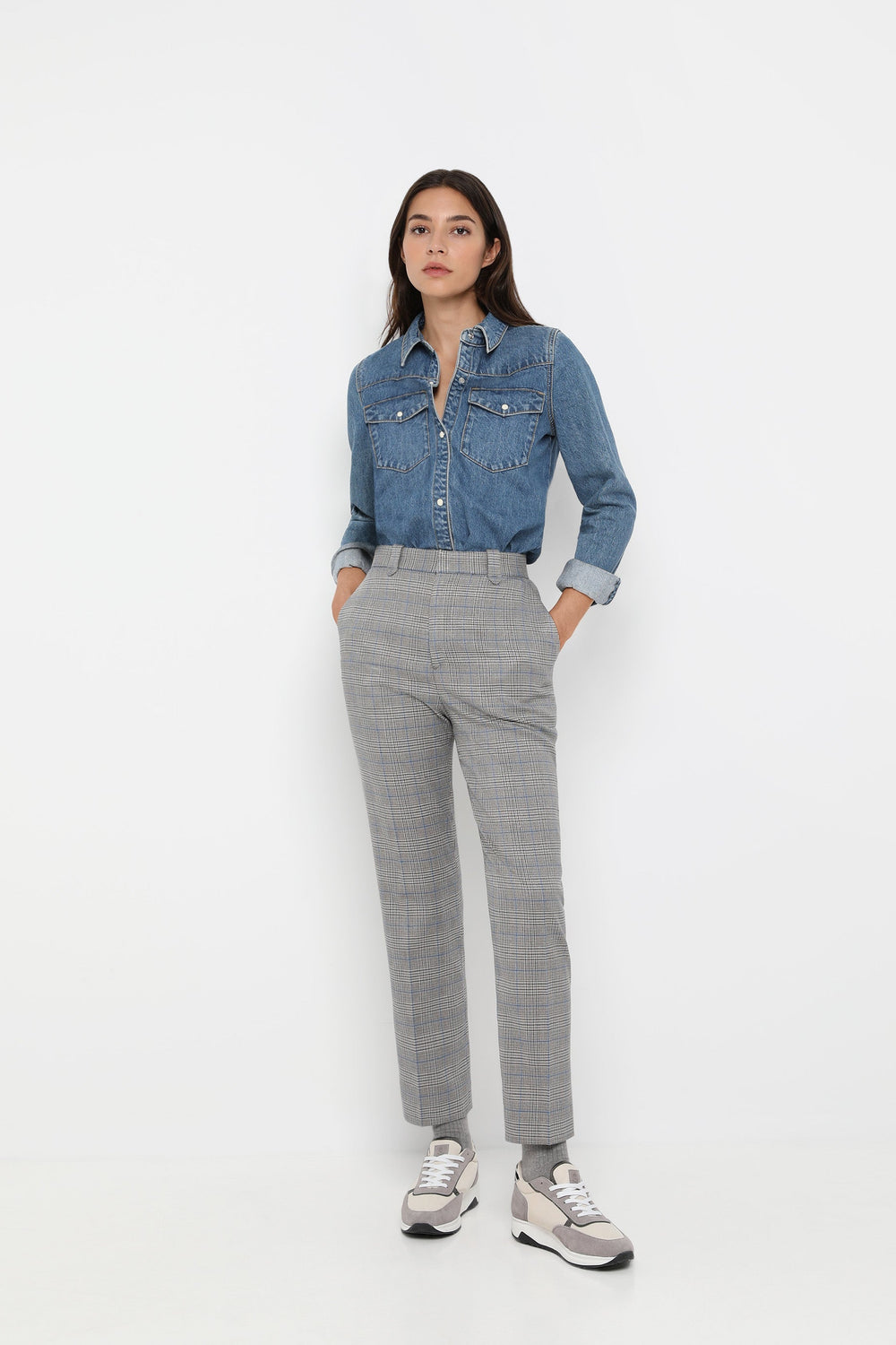 Straight check trousers made of slightly elastic fabric. Regular fit, high waist, zip fly and button fastening and pockets.