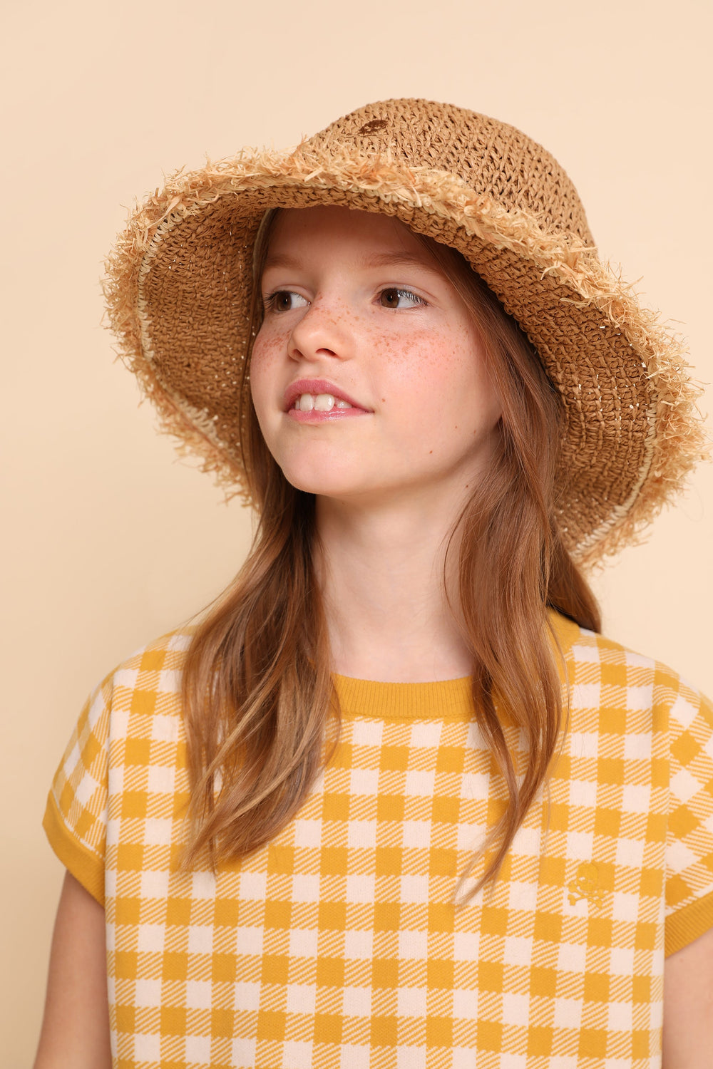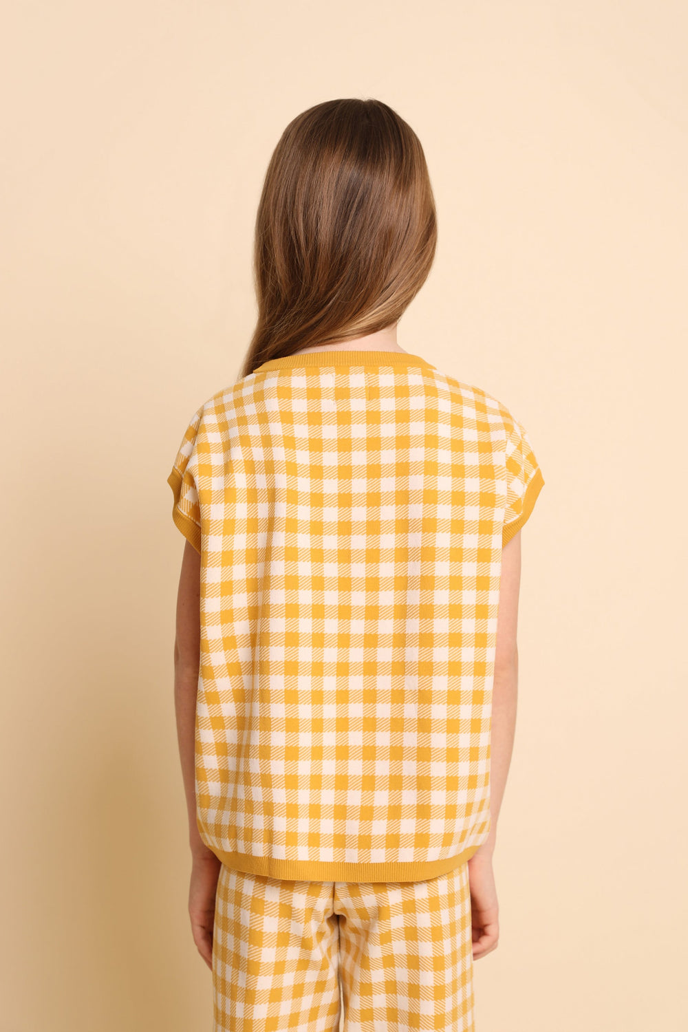 GINGHAM SWEATER WITH SHORT SLEEVES