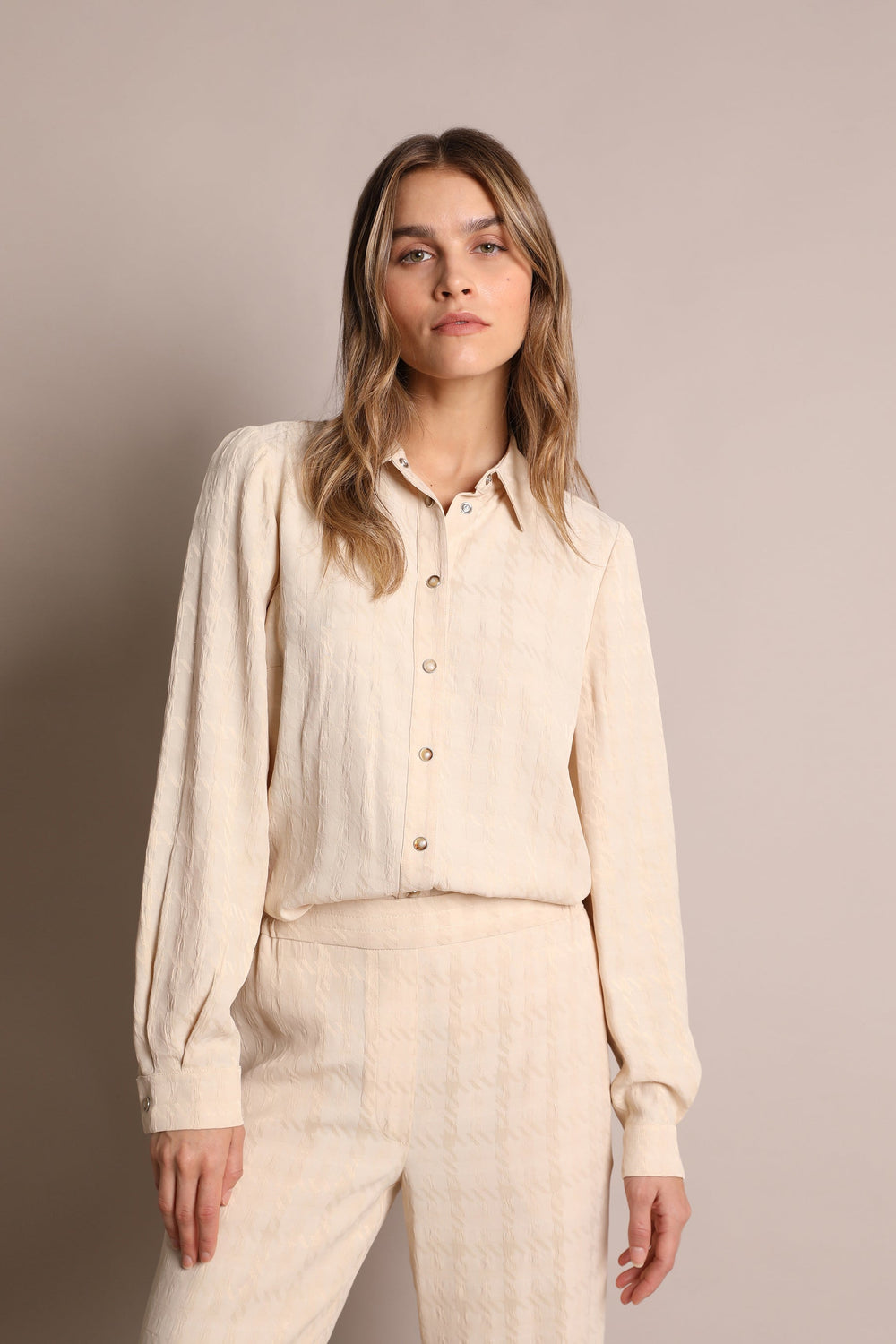 Shirt made from jacquard loose-fitting fabric. Regular fit, classic collar and snap-button fastening. Long sleeves with buttoned cuffs.