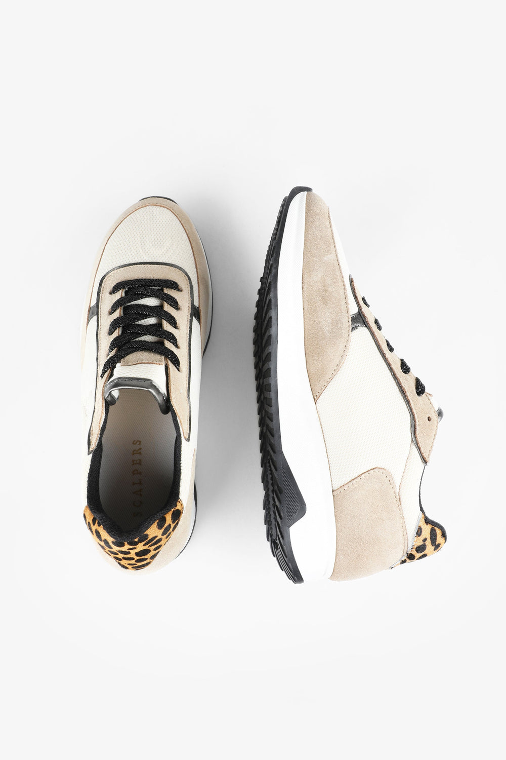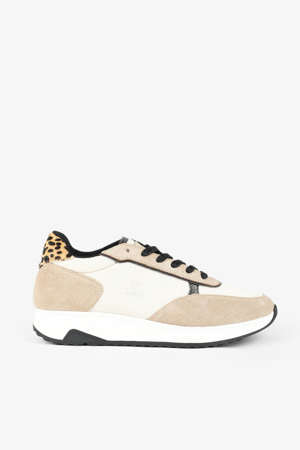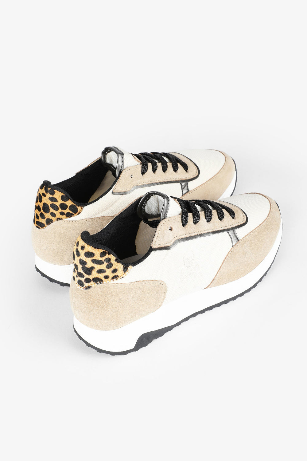 Sneakers with high soles. Made of blended leather, lace-up fastening with metallic laces, logo, toe and heel in contrast fabric, rubber toe cap and animal print details. Heel height: 3 cm