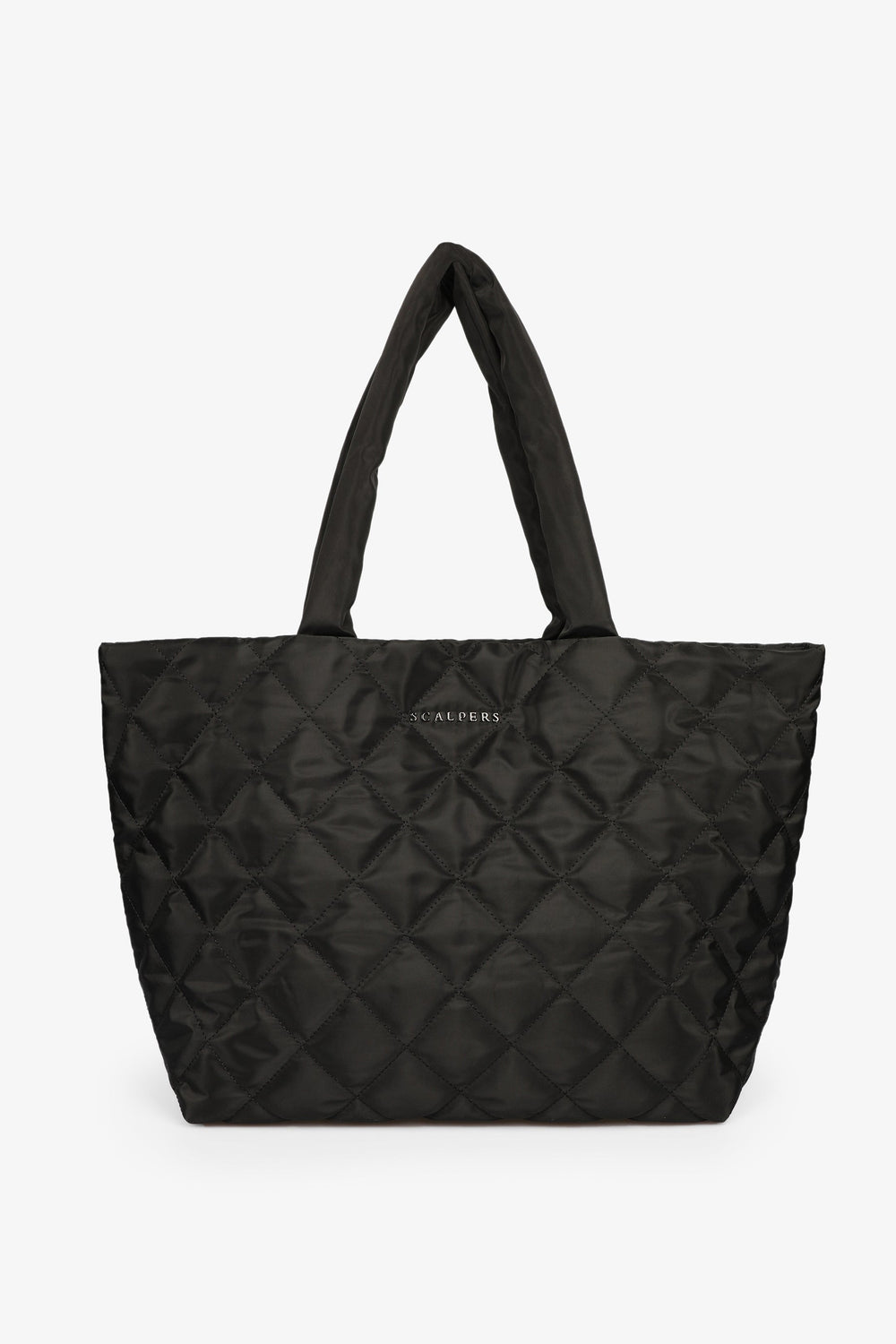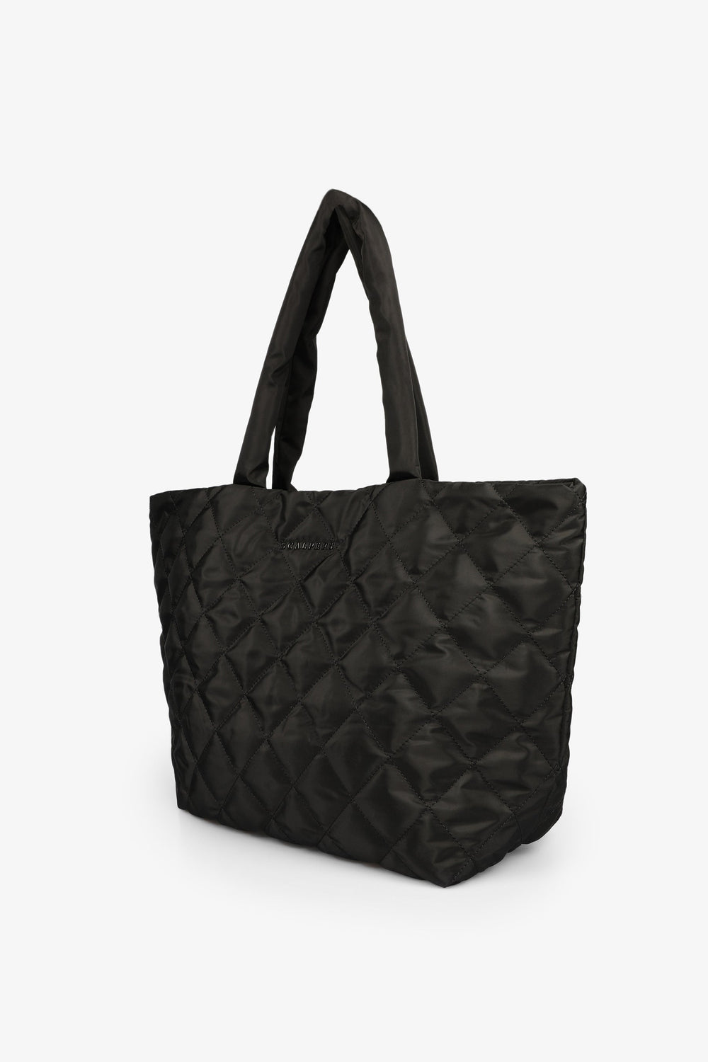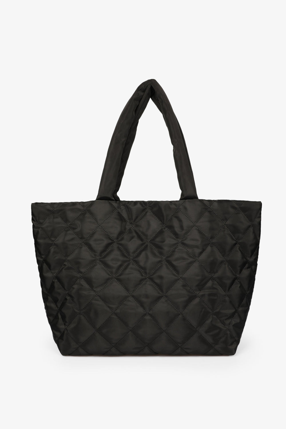 Quilted tote bag. Made from technical fabric, shoulder straps, internal zip pocket, metallic skull detail on the front. Height: 35 cm / Width: 40 cm / Depth: 12 cm / Capacity: 17 L (approx.)