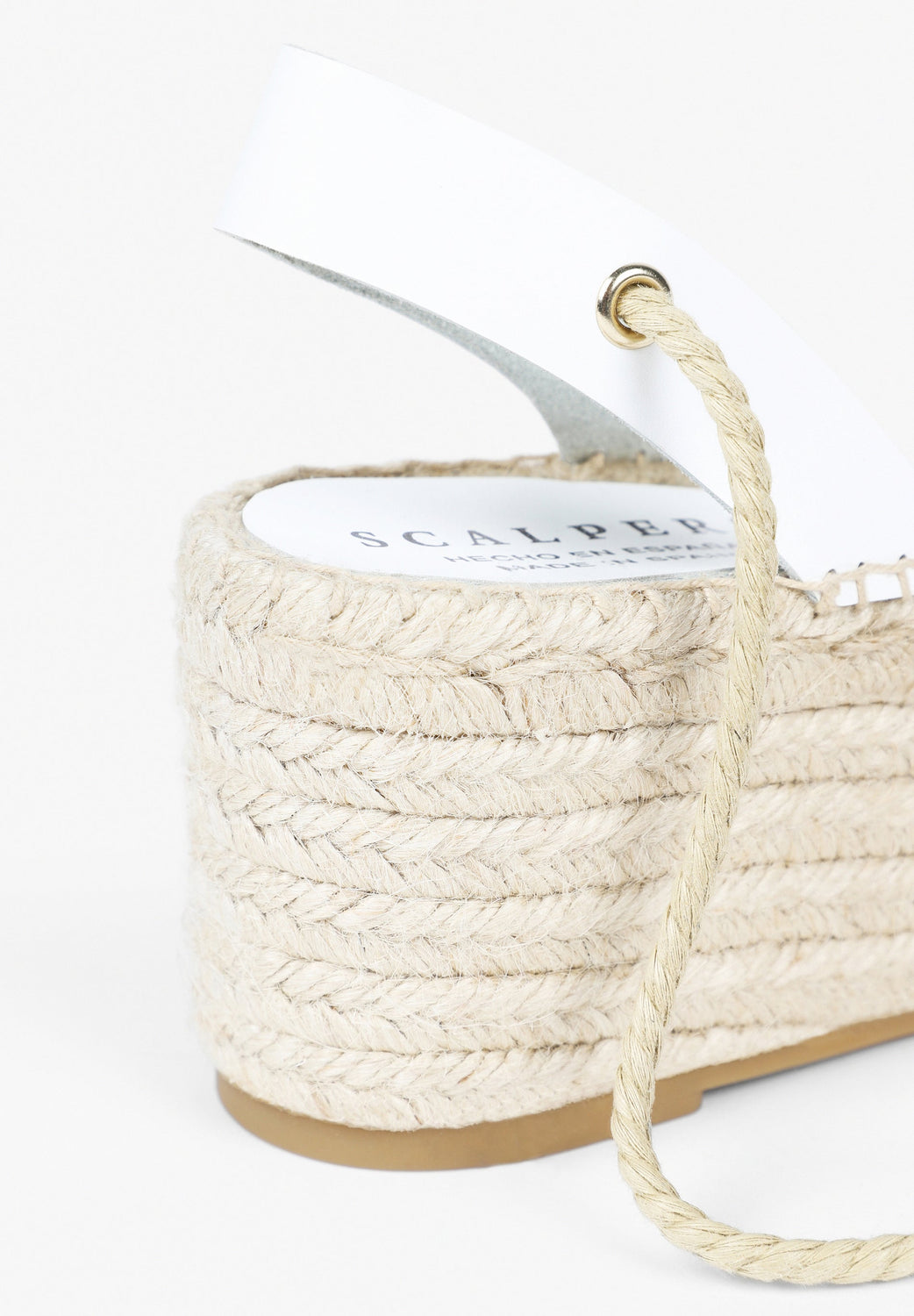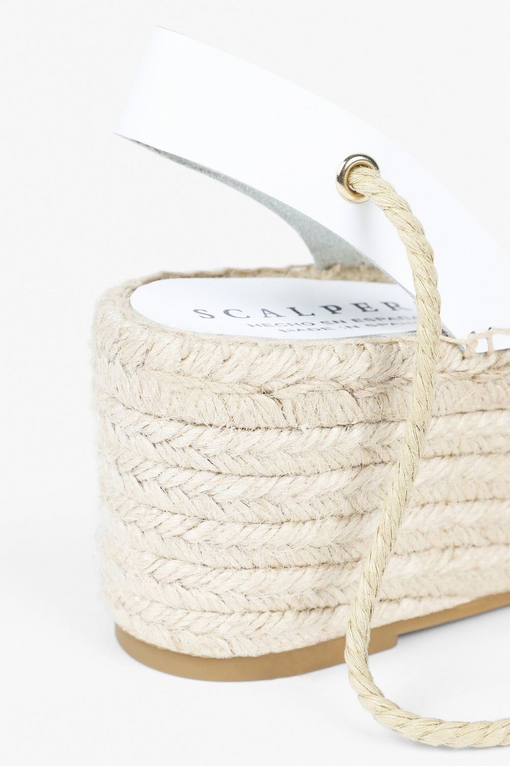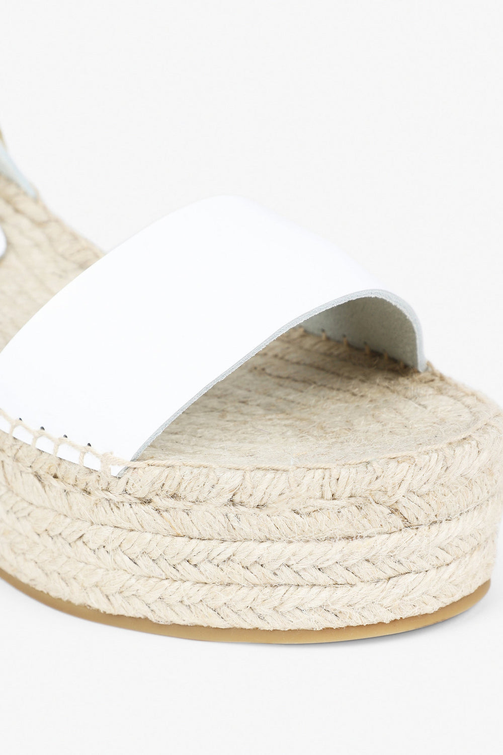 Wedge espadrilles made of jute and leather. Rubber sole and front platform.