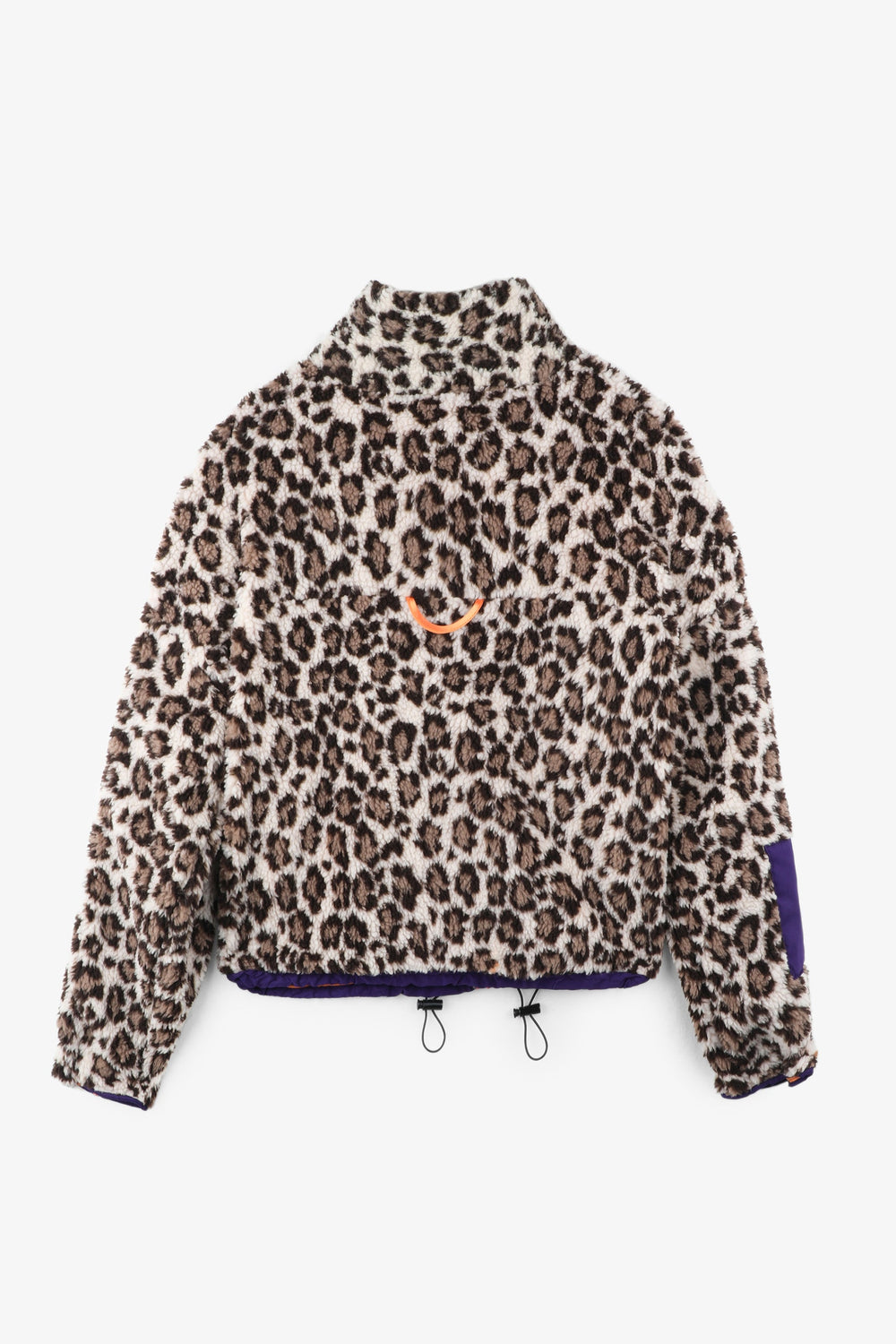 Fleece jacket with animal print, made from shearling fabric. Regular fit, high collar and contrast zip fastening. Long sleeves and contrast front zip pocket. Contrast lining.