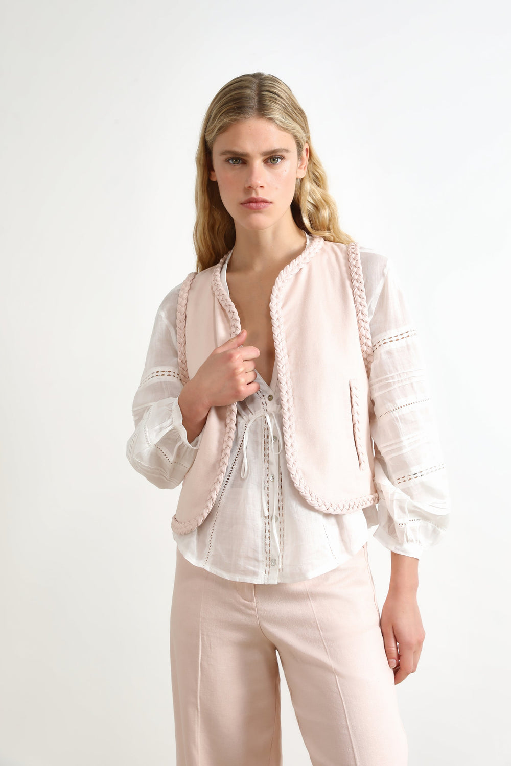 LINEN WAISTCOAT WITH BRAIDED DETAILS