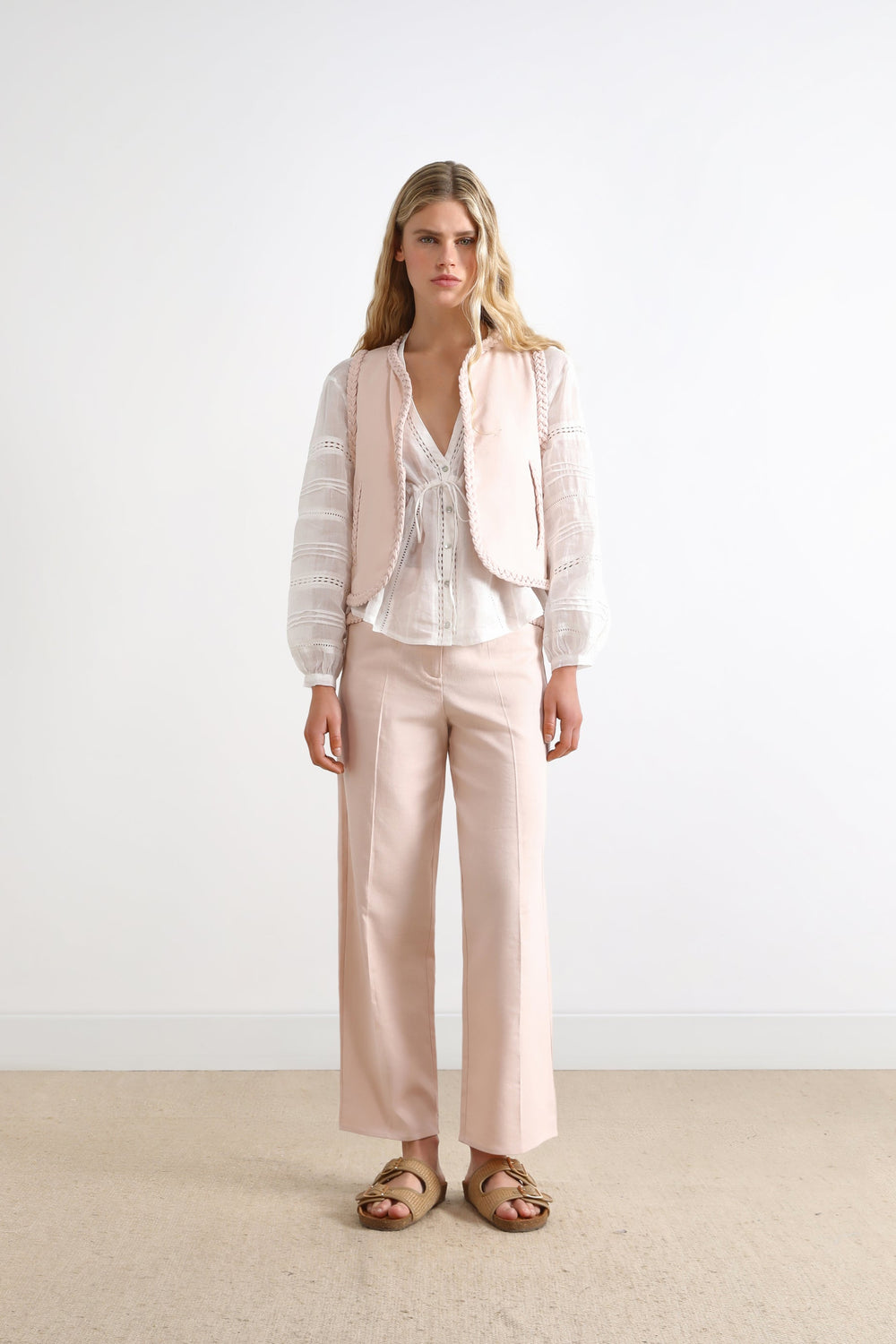 LINEN TROUSERS WITH BRAIDED DETAILS