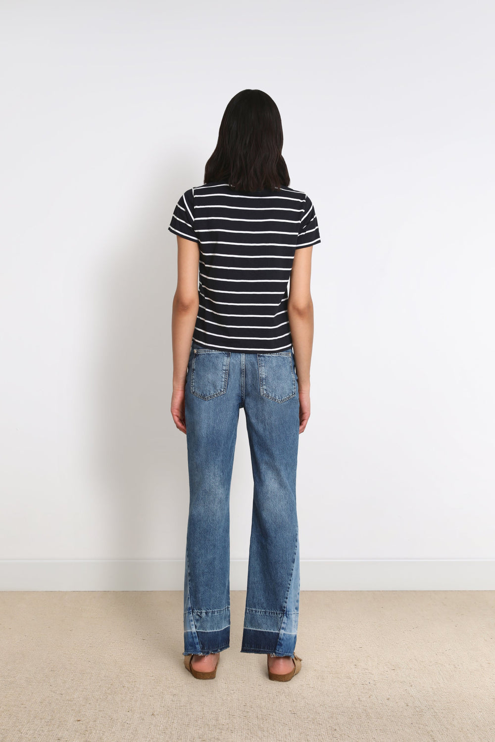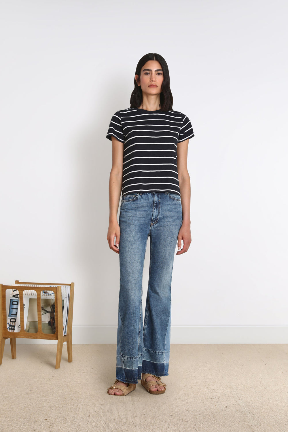 - Flared fit with high waist