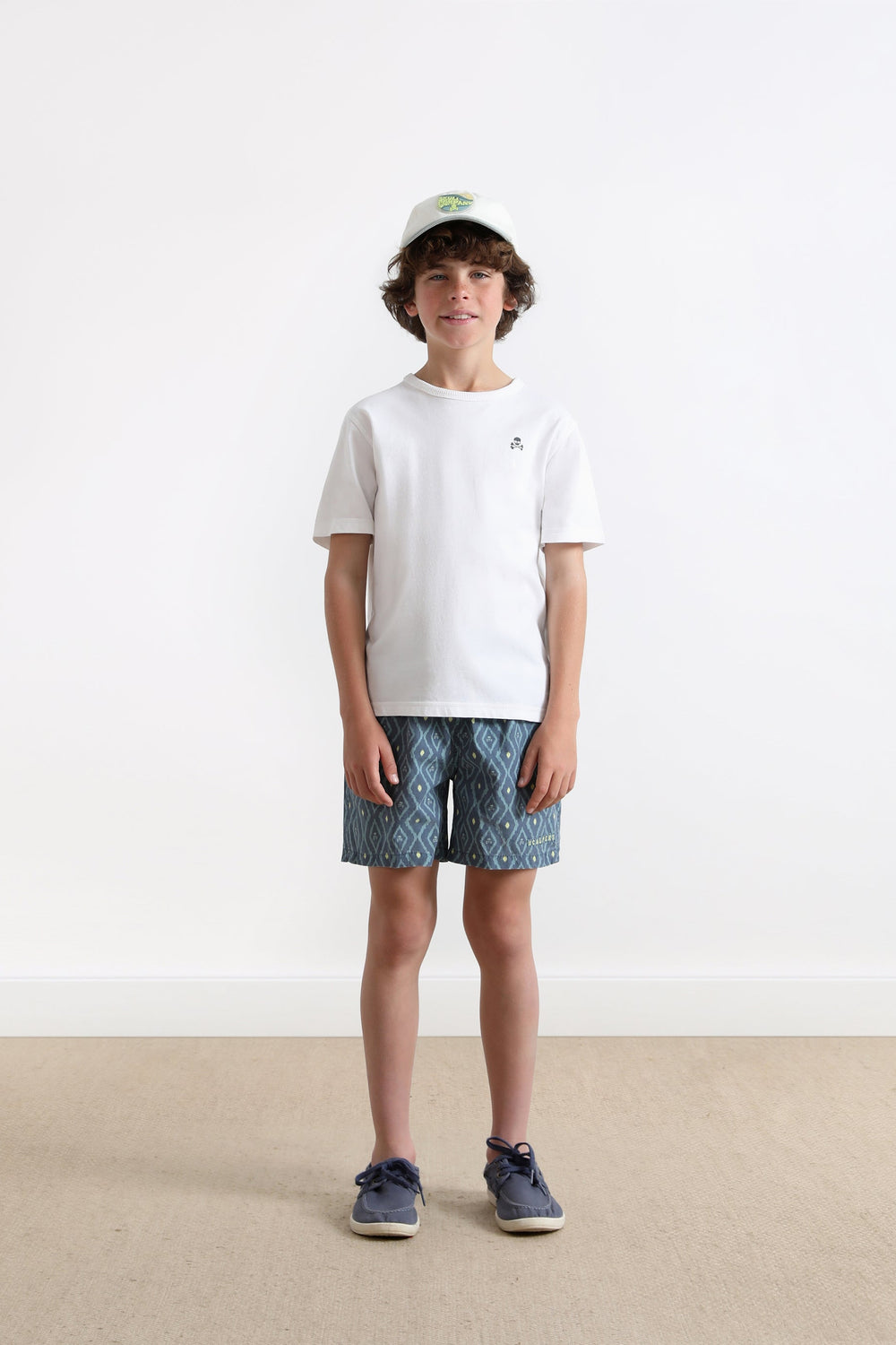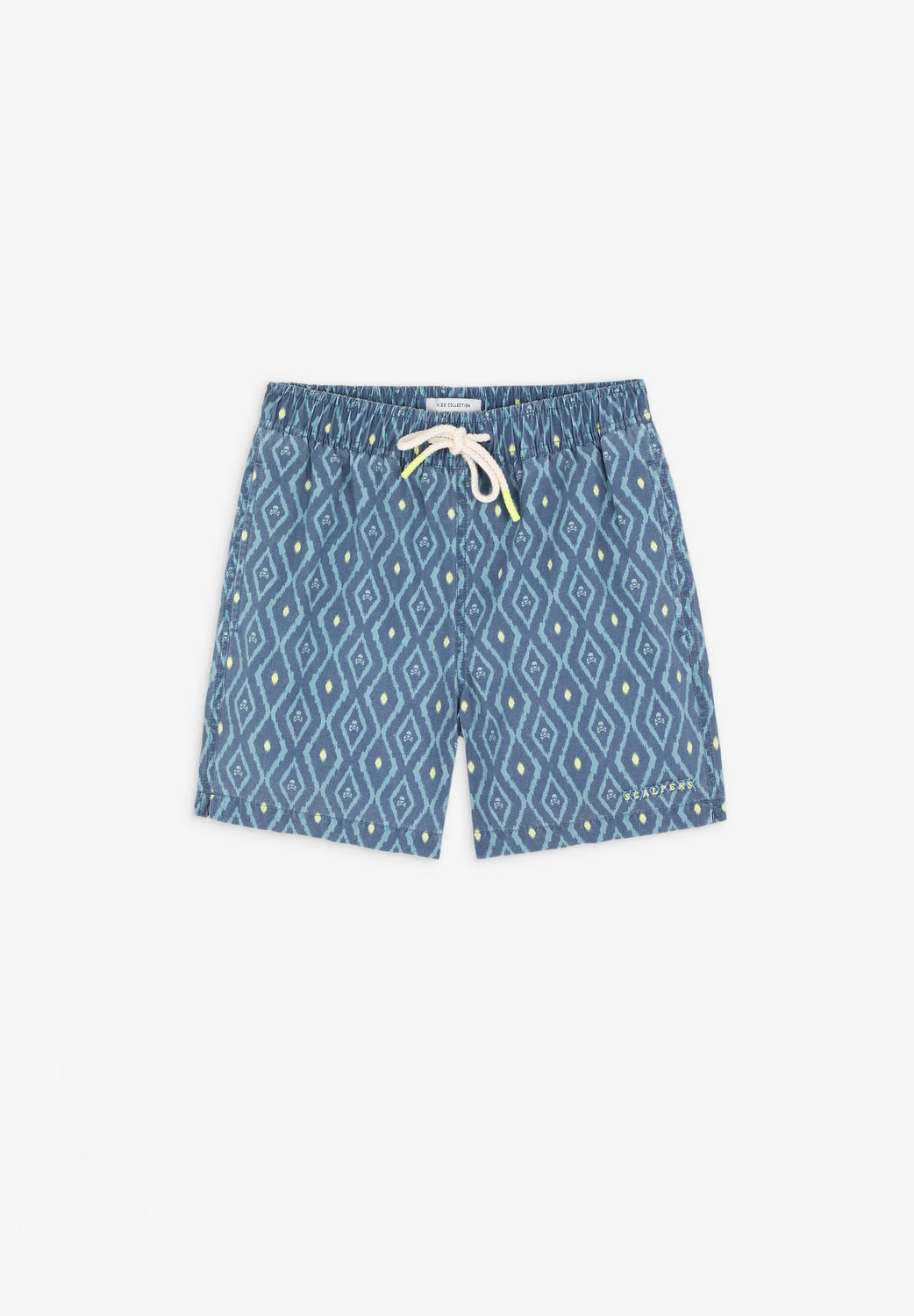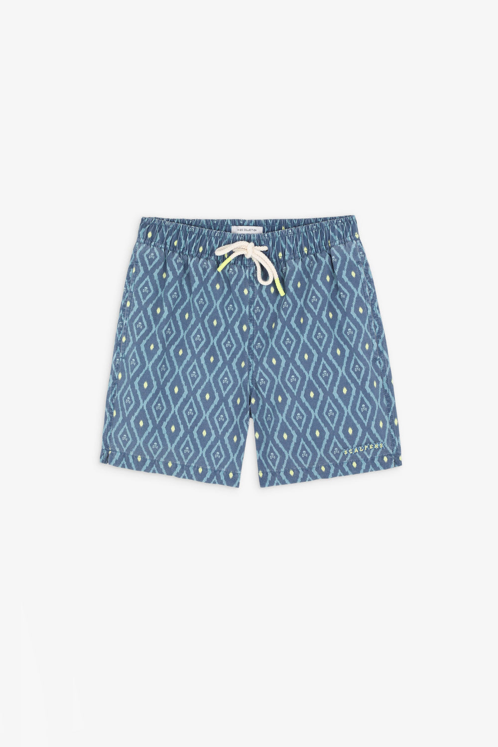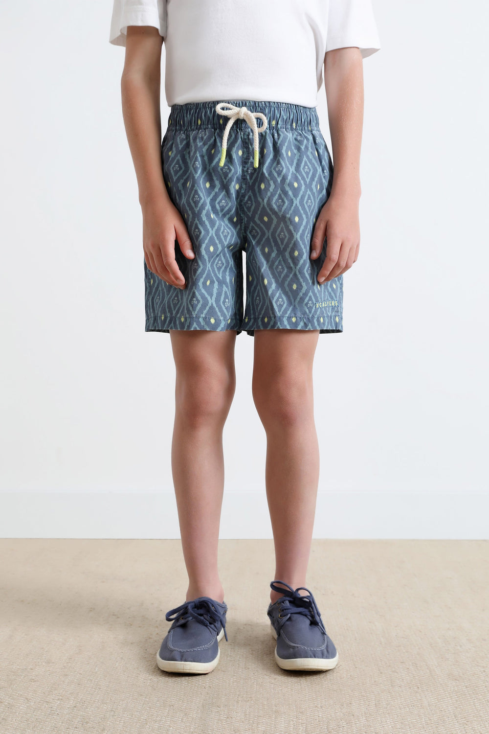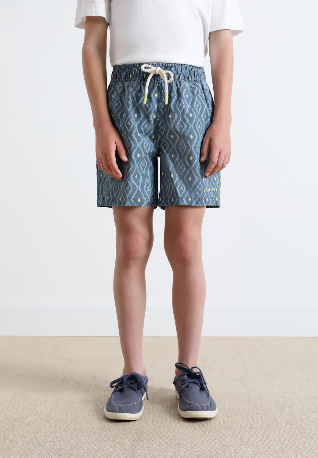 Swimming trunks with ikat print.