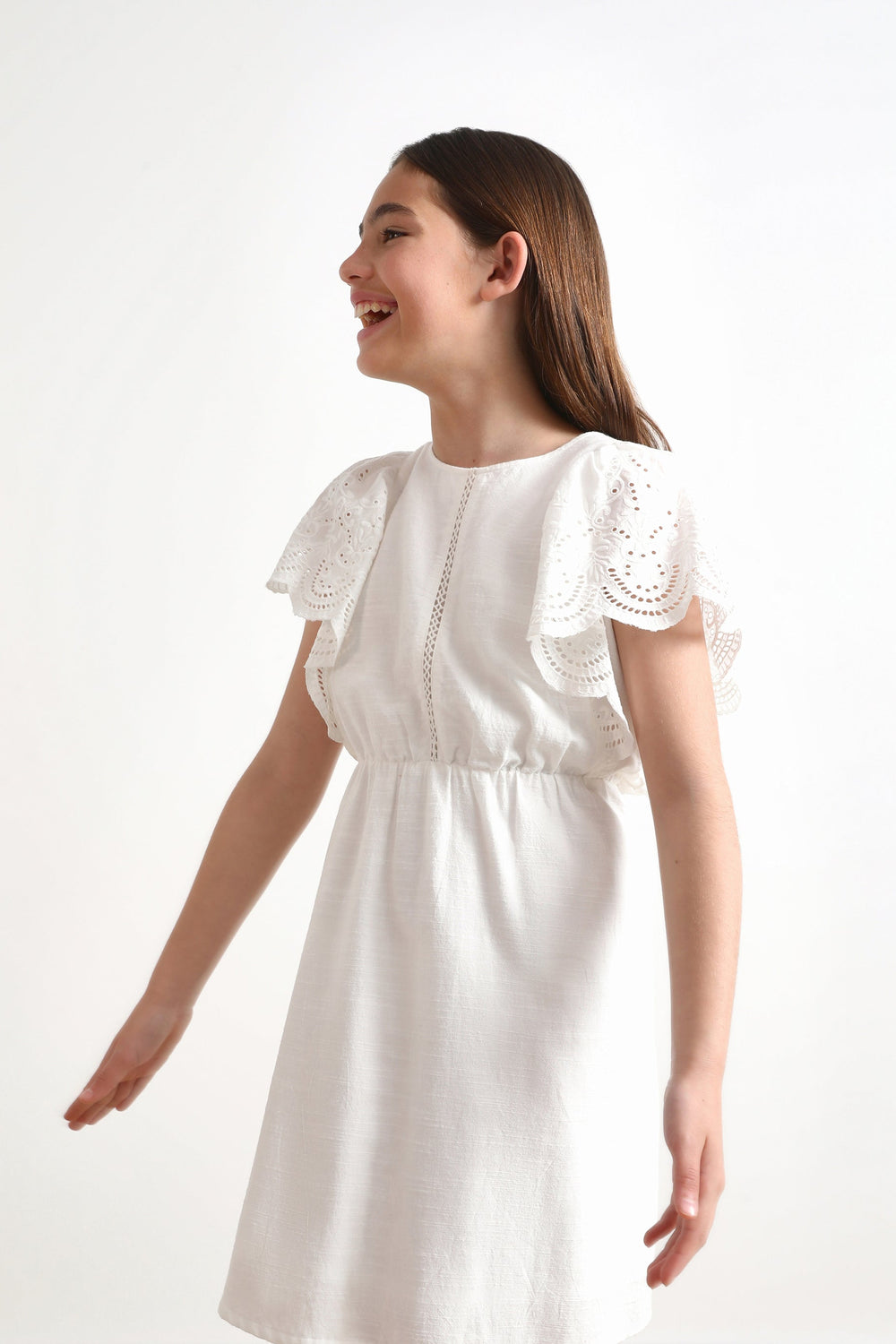 MINI DRESS WITH BRODERIE ANGLAISE RUFFLES