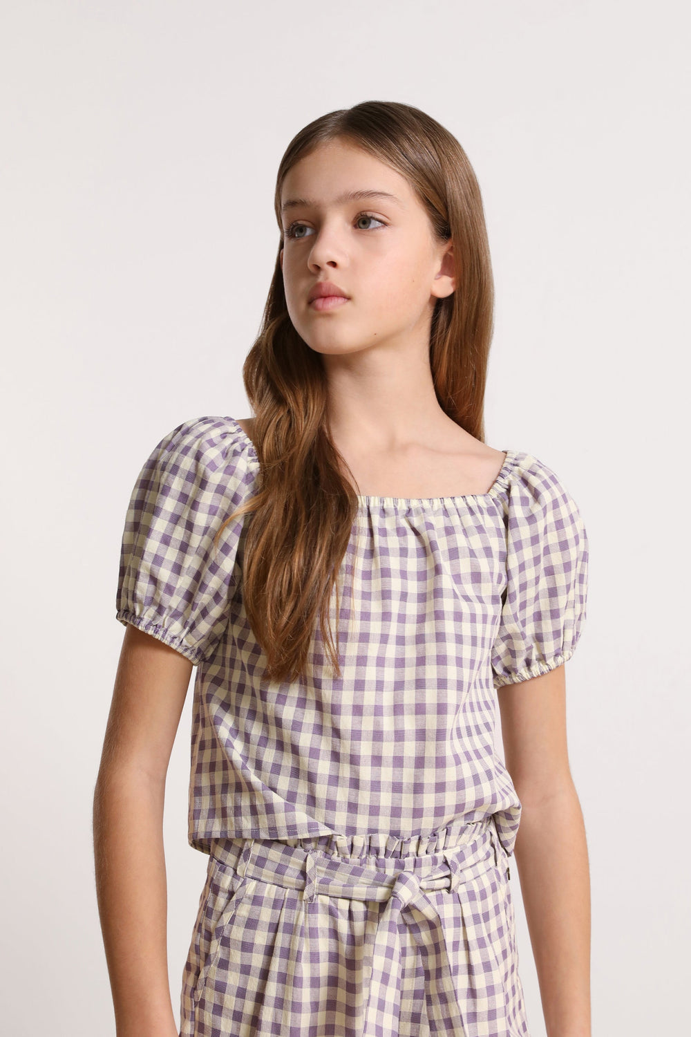 GINGHAM BLOUSE WITH PUFF SLEEVES